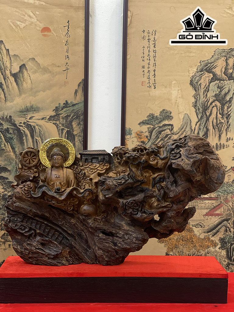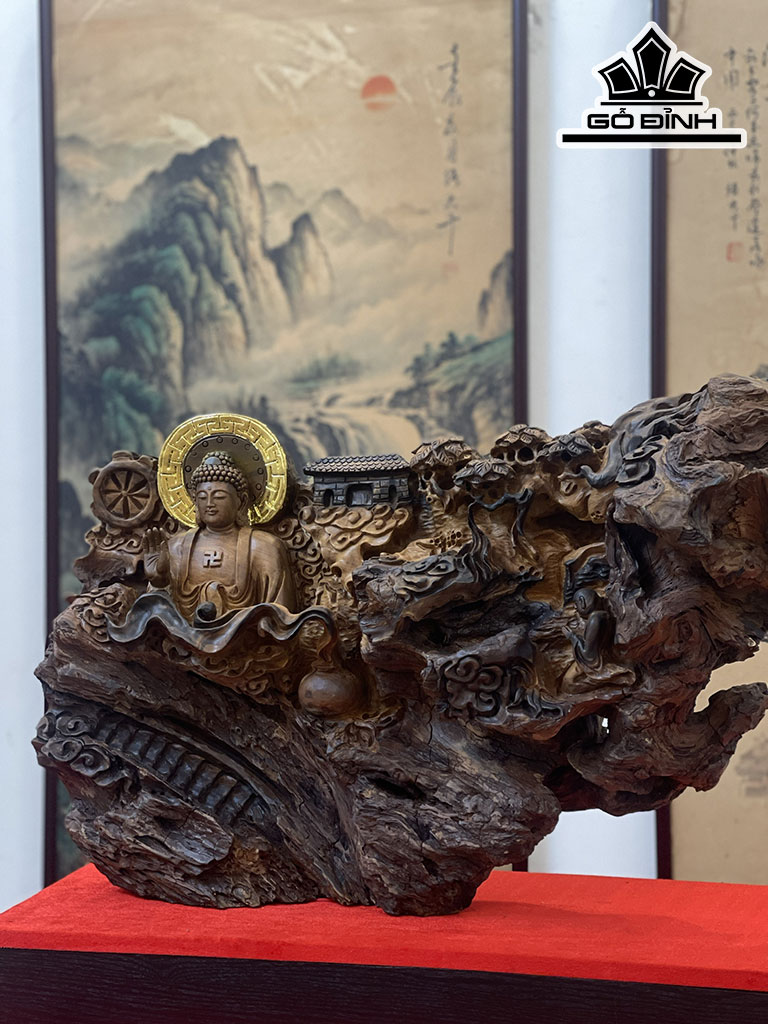 Tượng Nhất Tâm Bái Phật Gỗ Bách Xanh Cao 41 Ngang 70 Sâu 20 (cm)