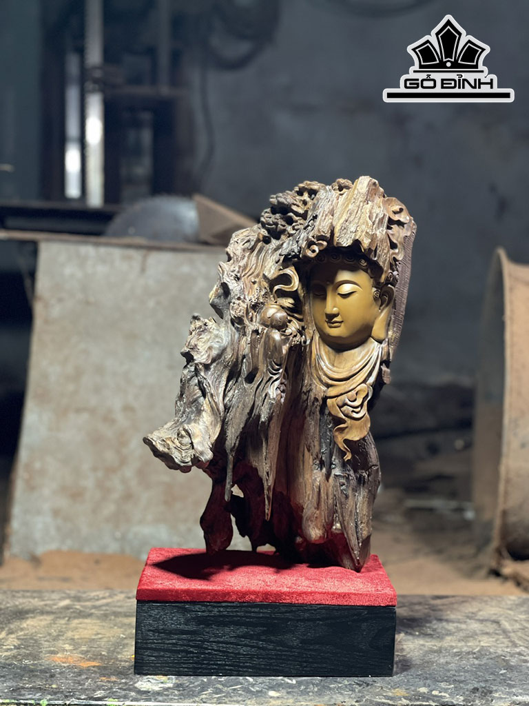 Tượng Nhất Tâm Bái Phật Gỗ Bách Xanh Cao 45 Ngang 28 Sâu 22 (cm)