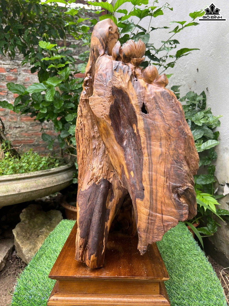 Tượng Nhất Tâm Bái Phật Gỗ Bách Xanh Cao 57 Ngang 69 Sâu 26 (cm)