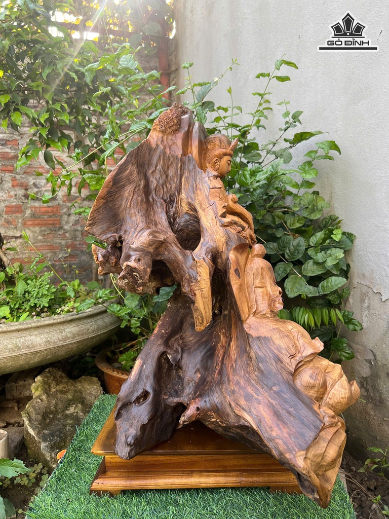 Tượng Nhất Tâm Bái Phật Gỗ Bách Xanh Cao 61 Ngang 63 Sâu 45 (cm)
