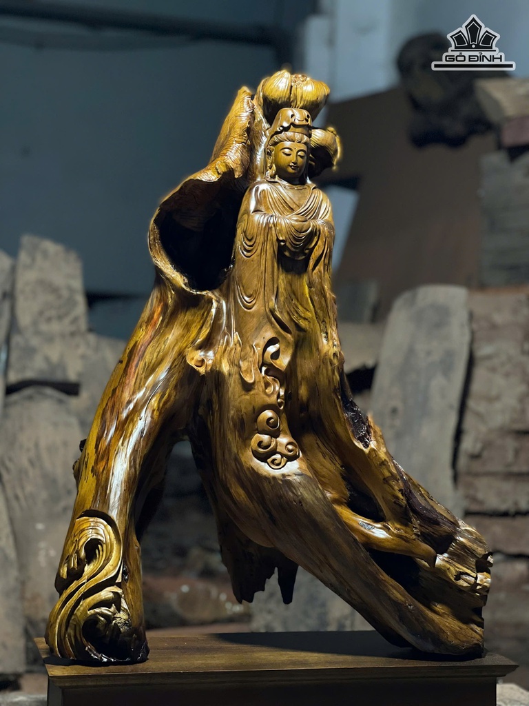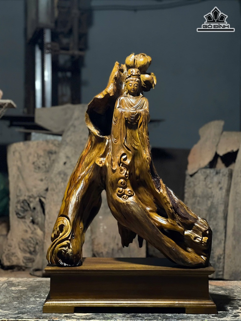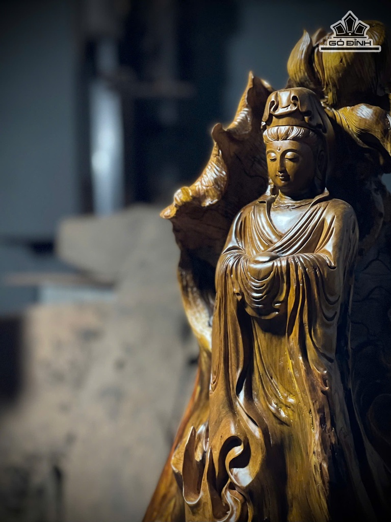 Tượng Nhất Tâm Bái Phật Gỗ Bách Xanh Cao 63 Ngang 46 Sâu 23 (cm)