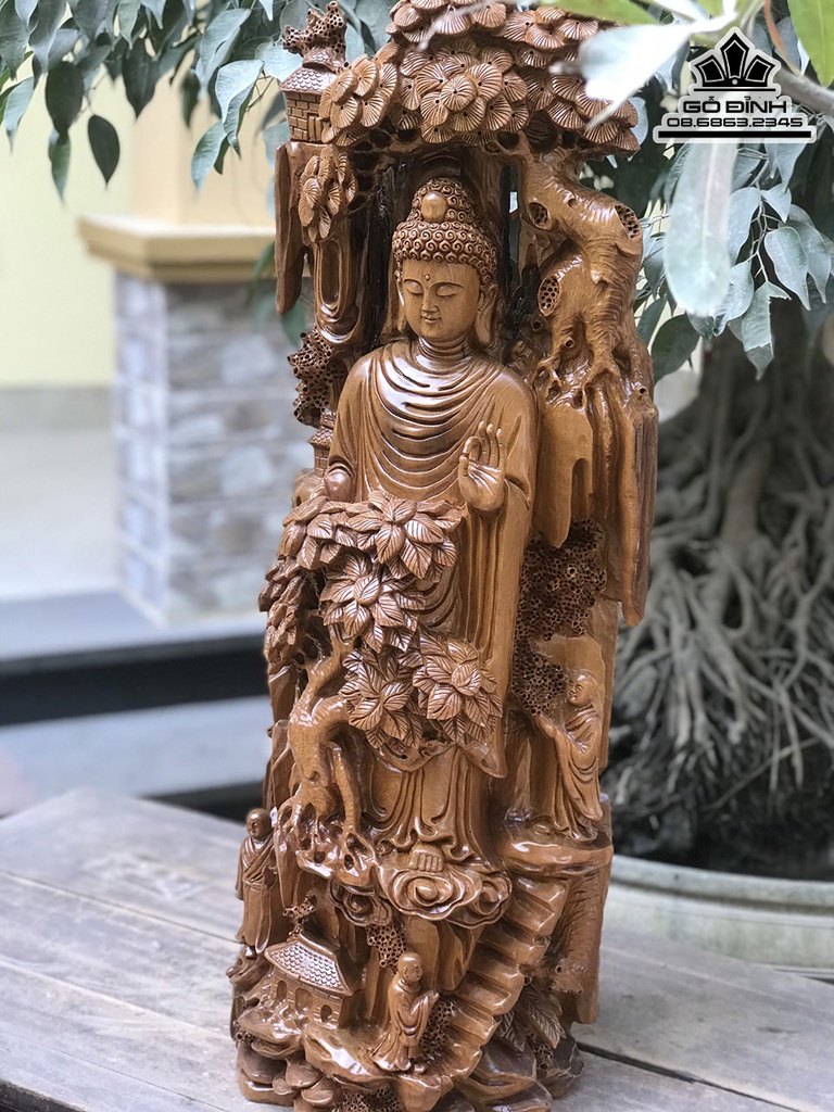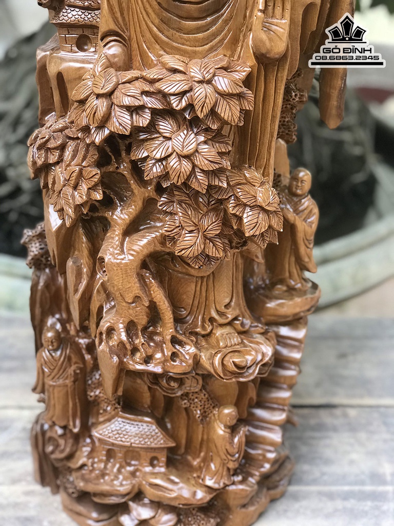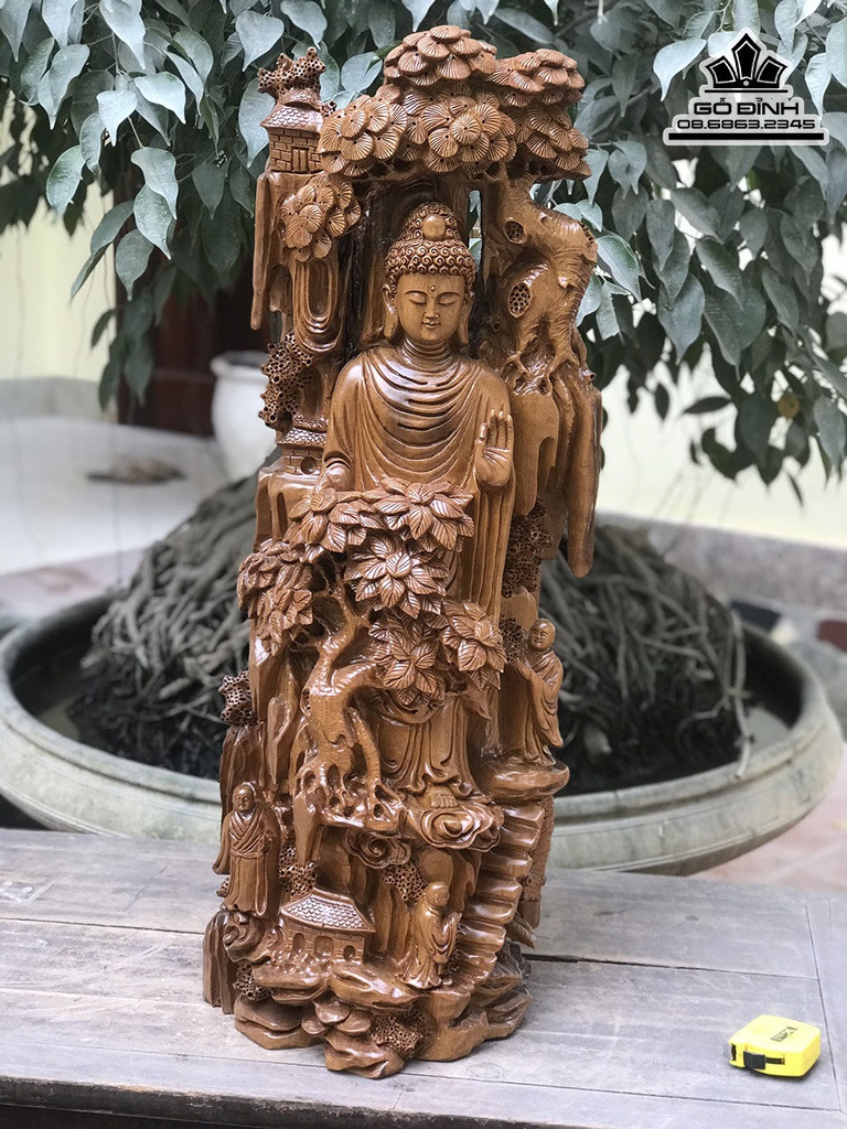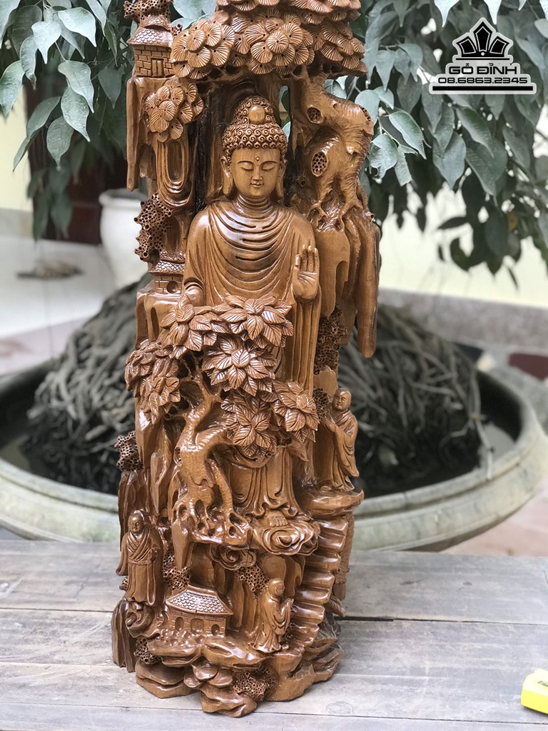 Tượng Nhất Tâm Bái Phật Gỗ Bách Xanh Cao 75 Ngang 75 Sâu 26 (cm)