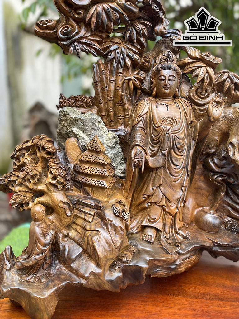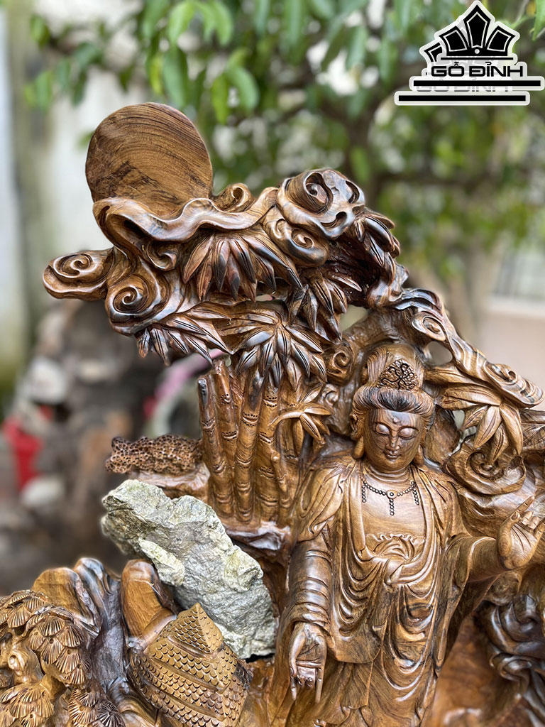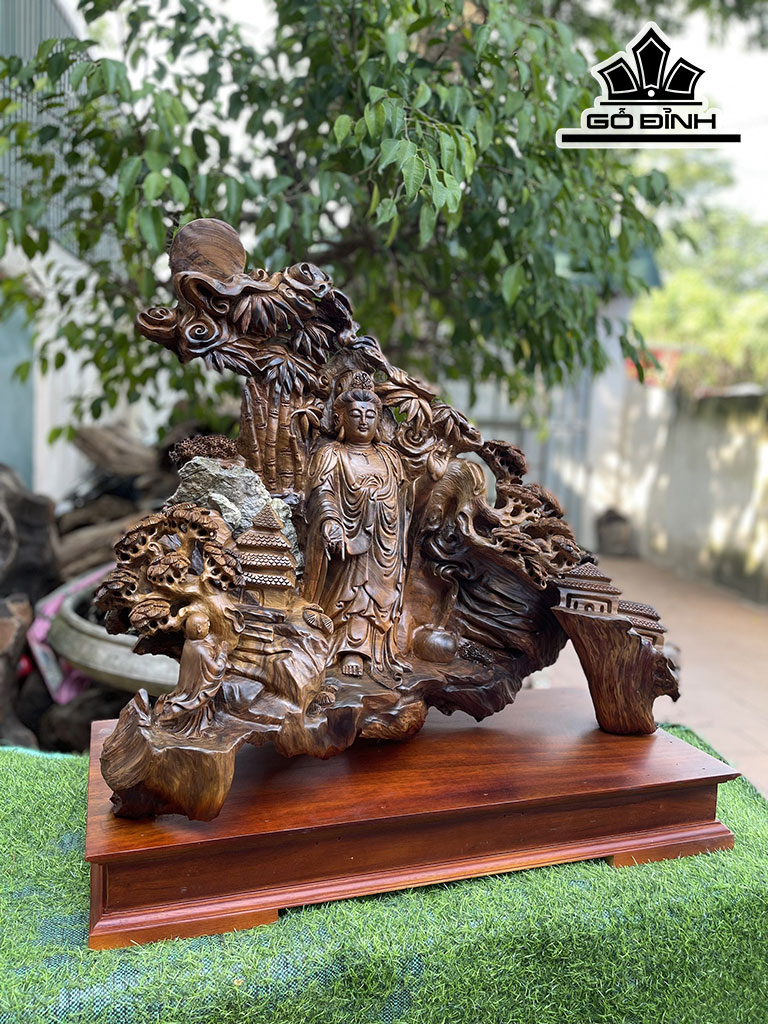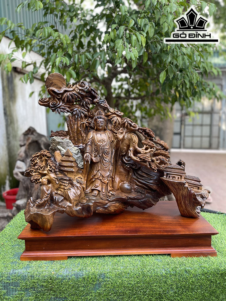 Tượng Nhất Tâm Bái Phật Gỗ Bách Xanh Cao 75 Ngang 80 Sâu 40 (cm)