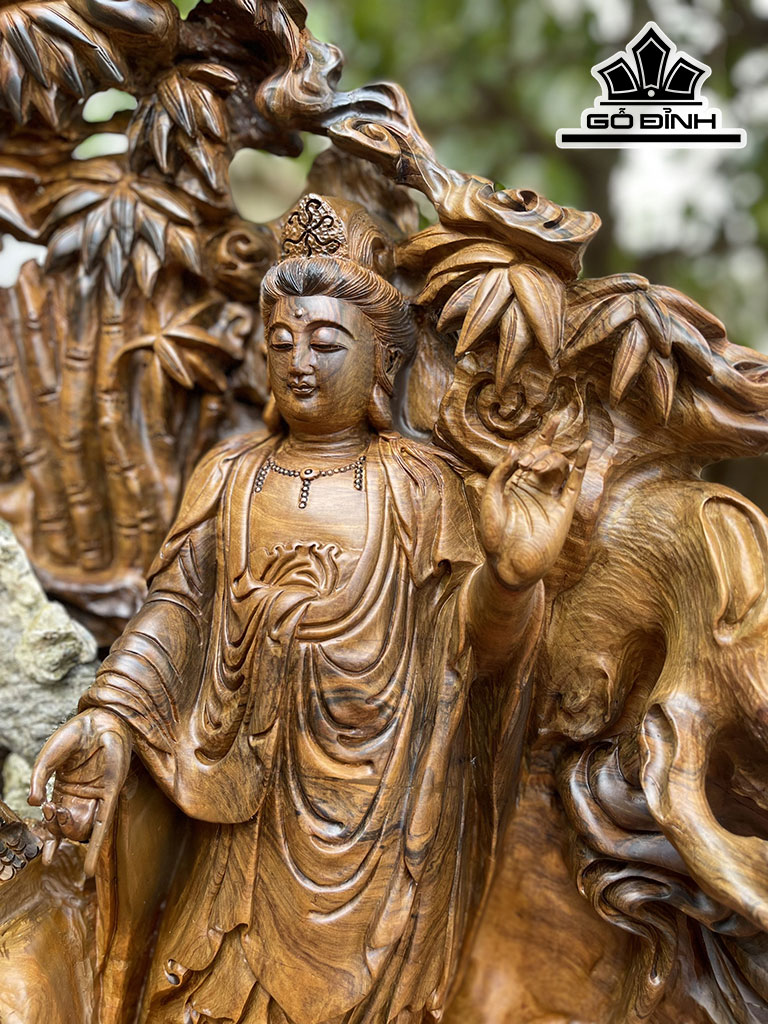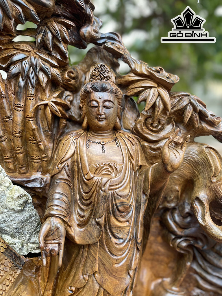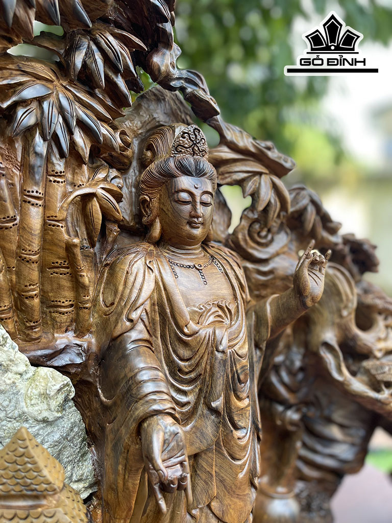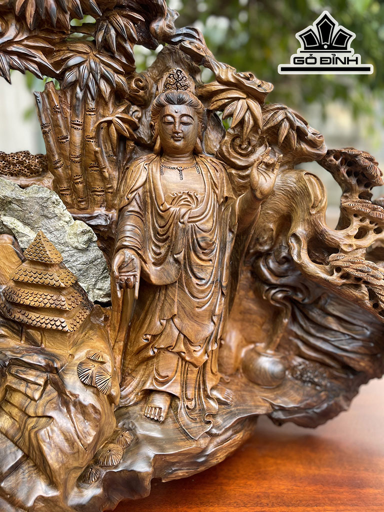 Tượng Nhất Tâm Bái Phật Gỗ Bách Xanh Cao 75 Ngang 80 Sâu 40 (cm)