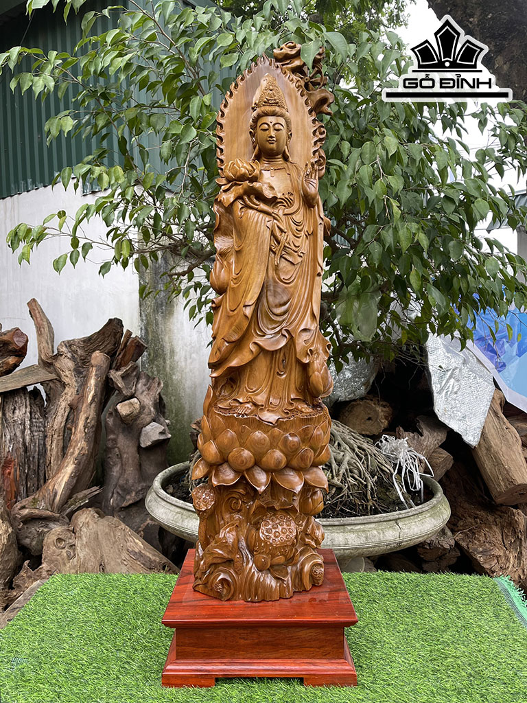 Tượng Nhất Tâm Bái Phật Gỗ Bách Xanh Cao Cả Kỷ 111 Ngang 25 Sâu 23 (cm)