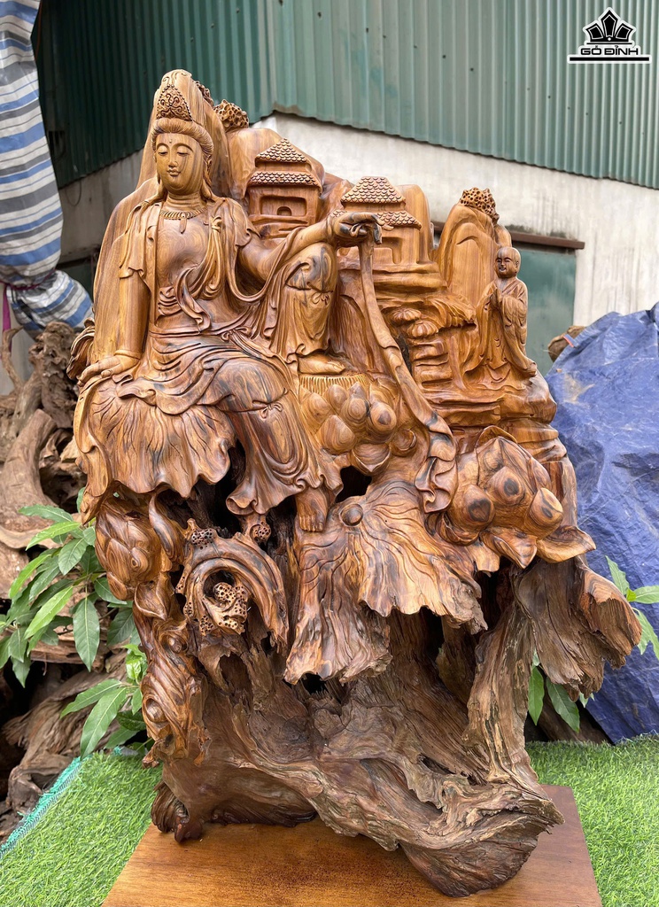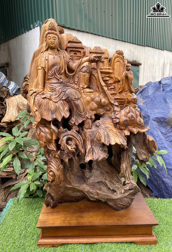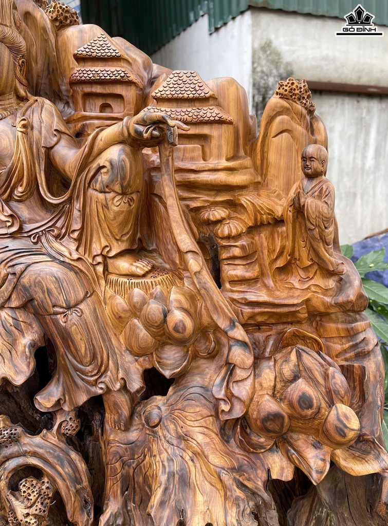Tượng Nhất Tâm Bái Phật Gỗ Bách Xanh Cao Cả Kỷ 95 Ngang 58 Sâu 32 (cm) - Kỷ Cao 10 (cm)