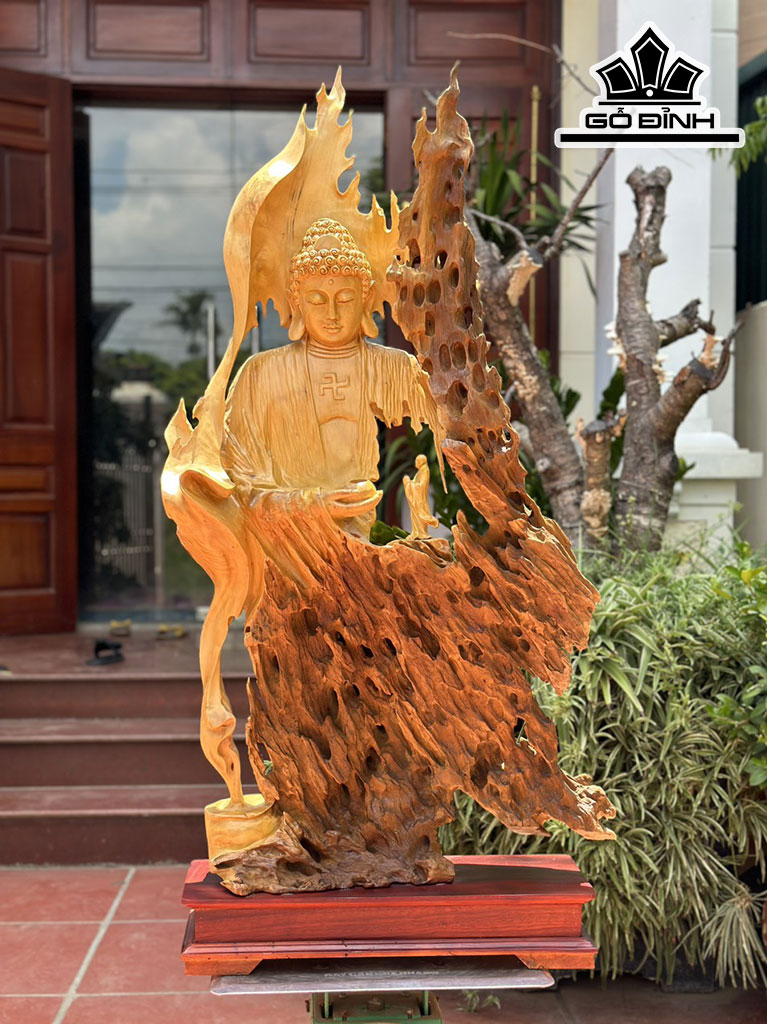 Tượng Nhất Tâm Bái Phật Gỗ Dổi Cao 110 Ngang 60 Sâu 20 (cm)