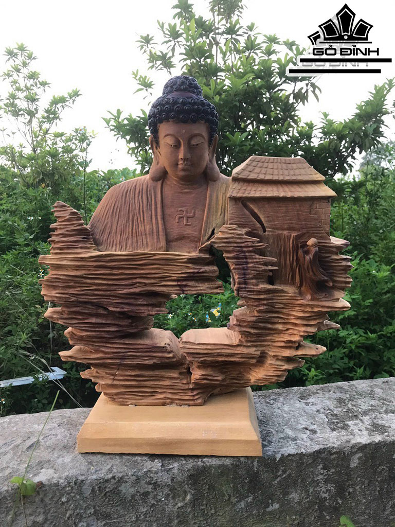 Tượng Nhất Tâm Bái Phật Gỗ Dổi Cao 60 Ngang 50 Sâu 10 (cm)