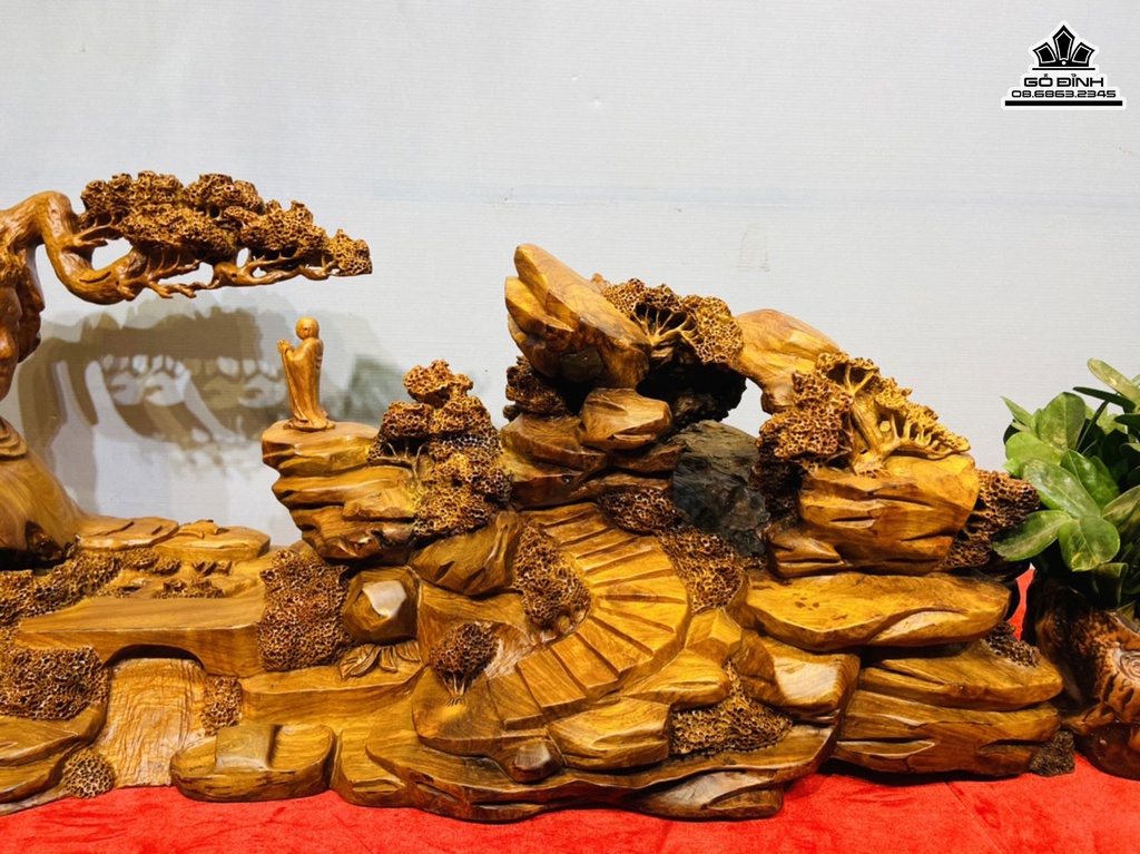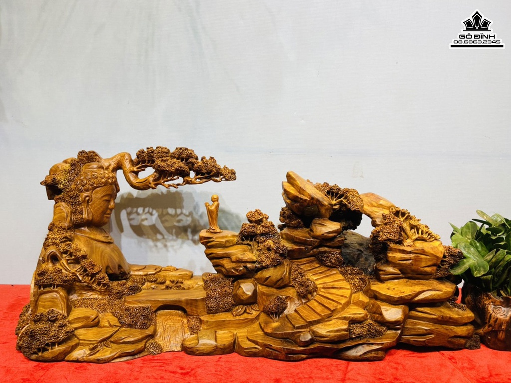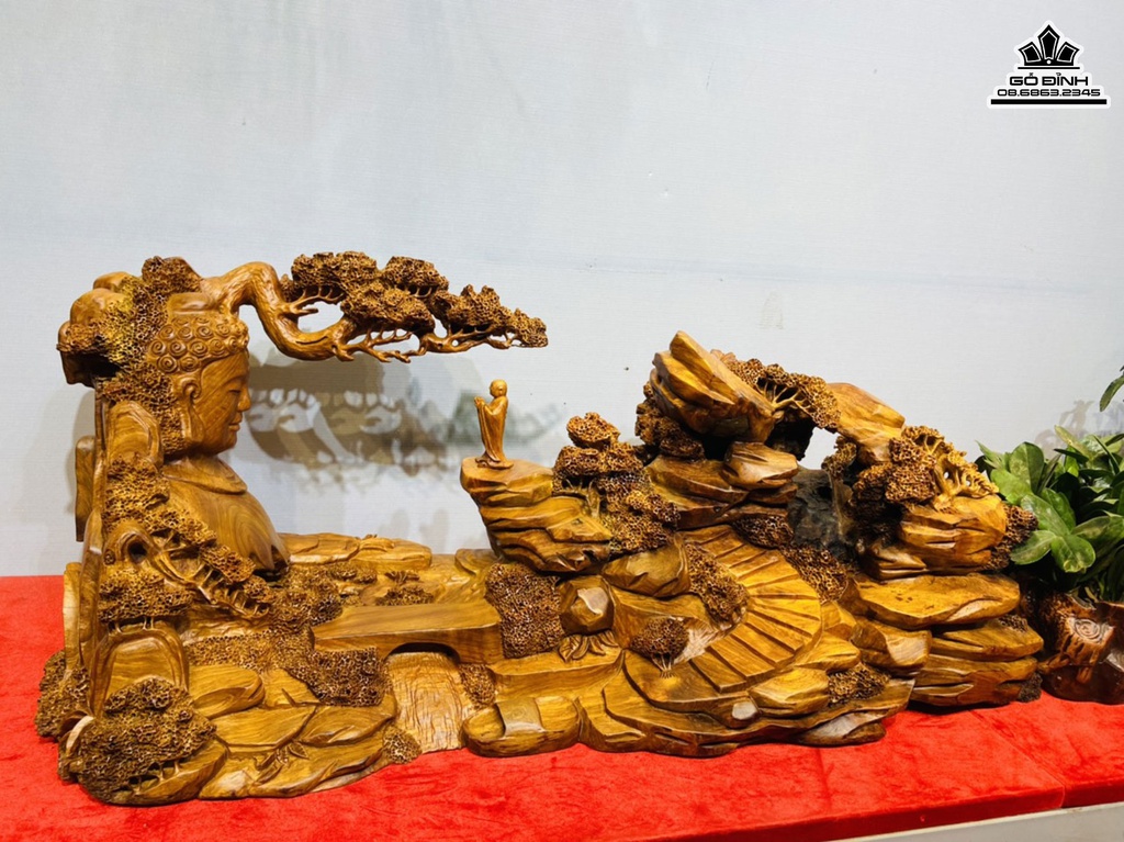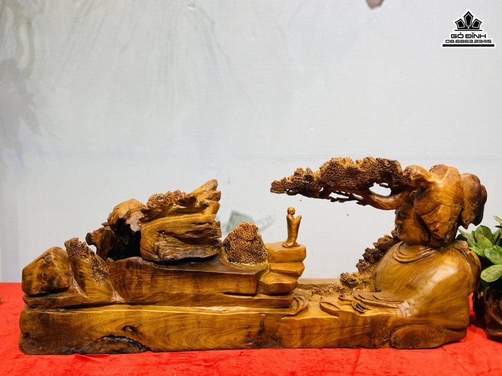 Tượng Nhất Tâm Bái Phật Gỗ Hương Cao 38 Ngang 90 Sâu 31(cm)