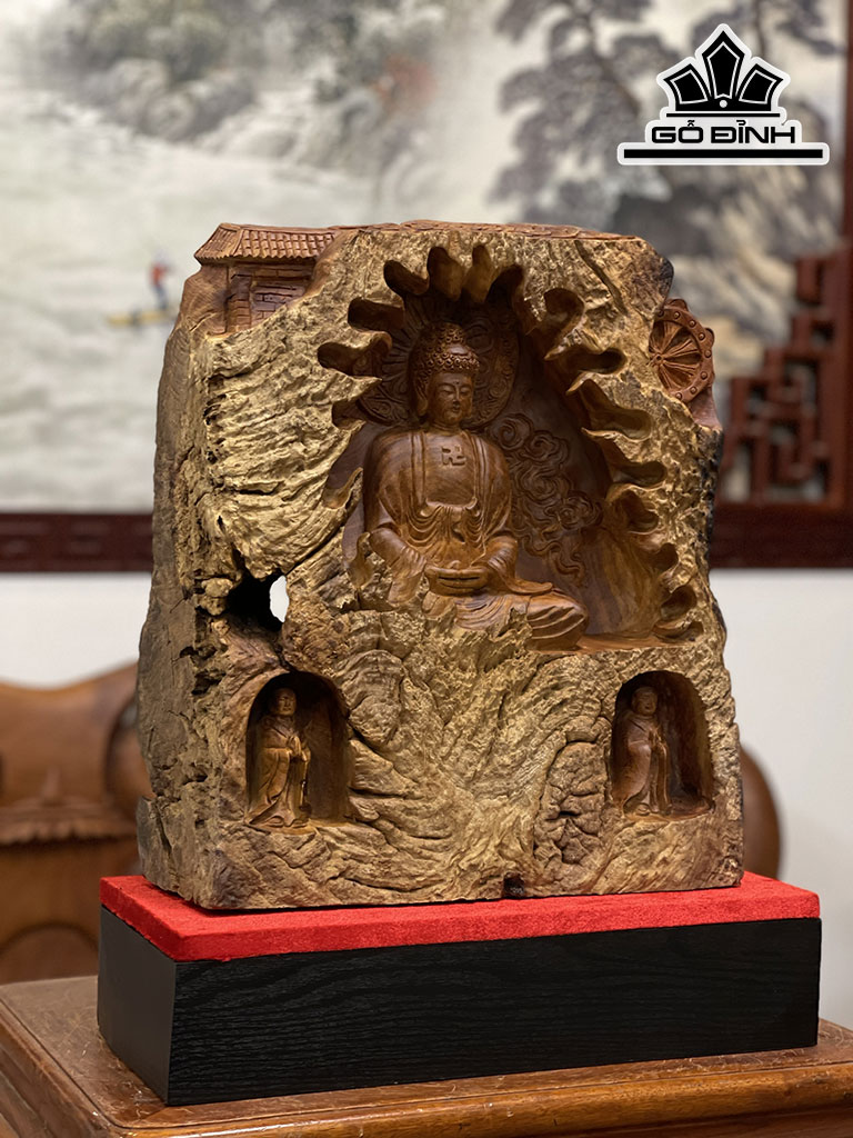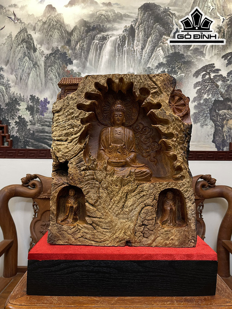Tượng Nhất Tâm Bái Phật Gỗ Hương Cao 41 Ngang 36 Sâu 15 (cm)