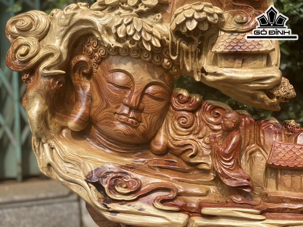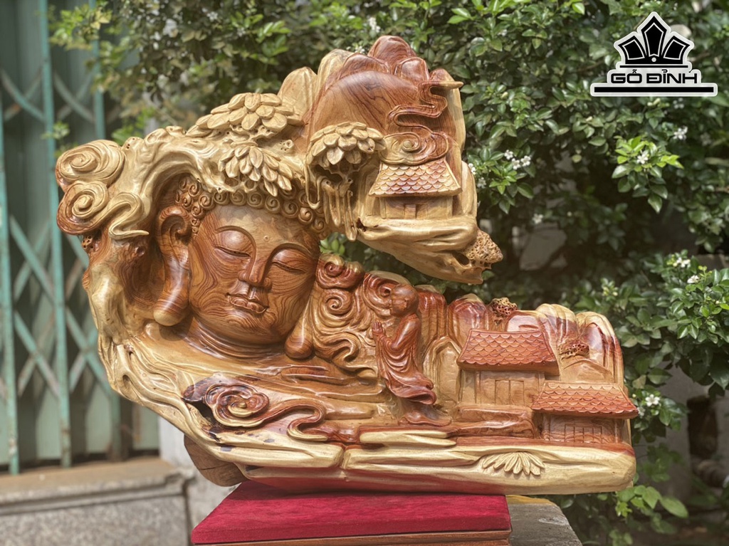 Tượng Nhất Tâm Bái Phật Gỗ Hương Cao 52 Ngang 65 Sâu 15 (cm)
