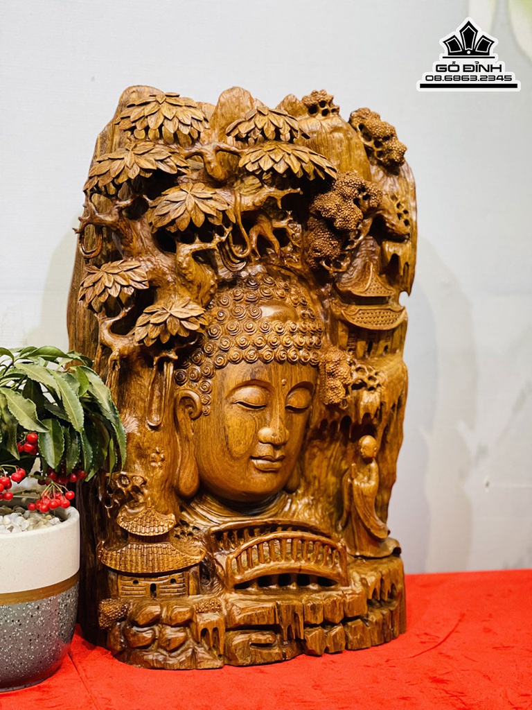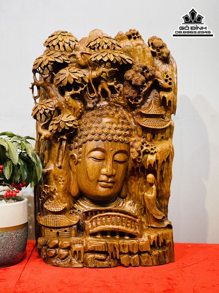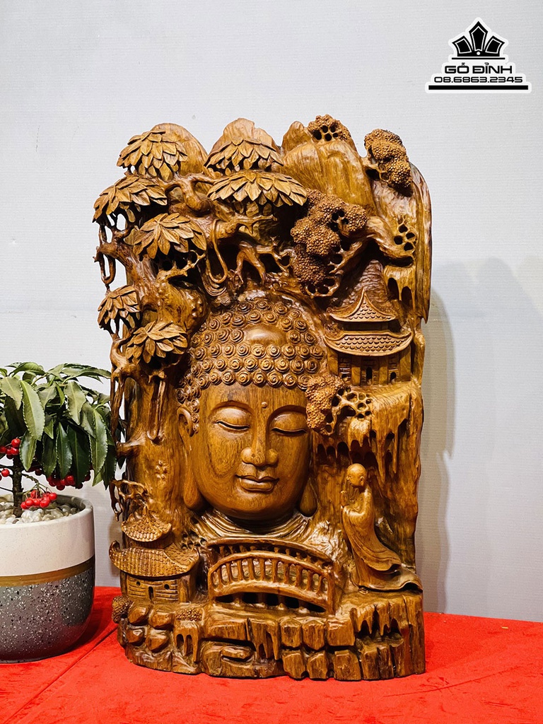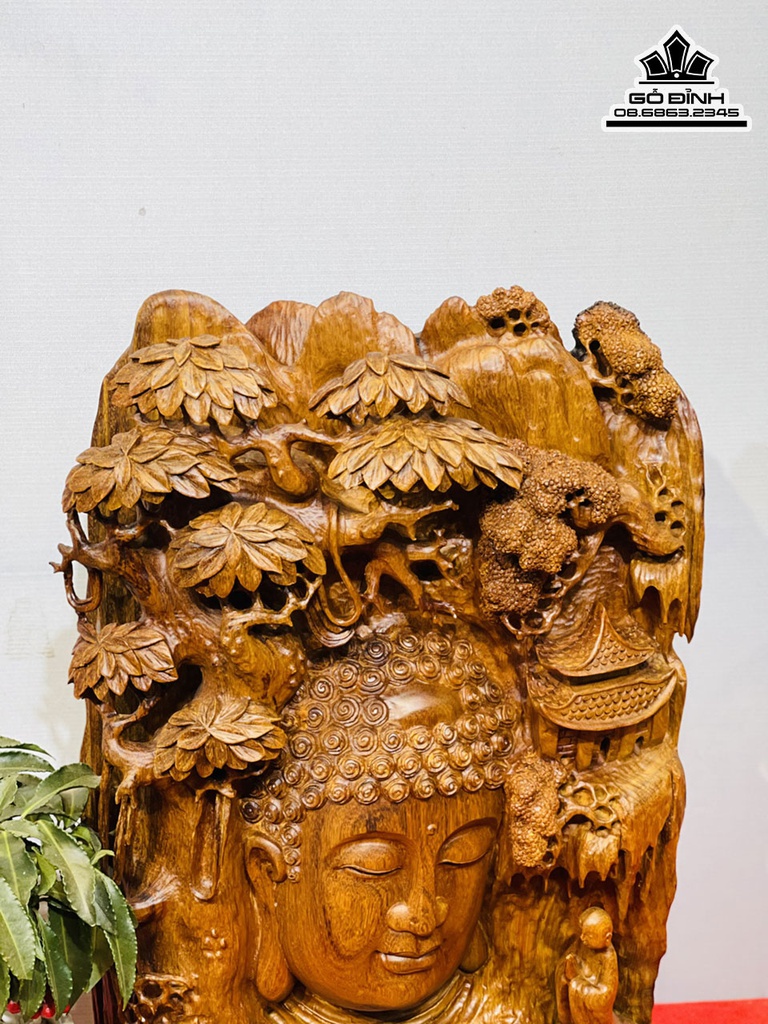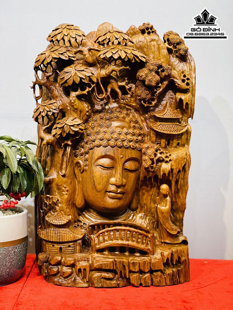 Tượng Nhất Tâm Bái Phật Gỗ Hương Cao 60 Ngang 38 Sâu 16 (cm)