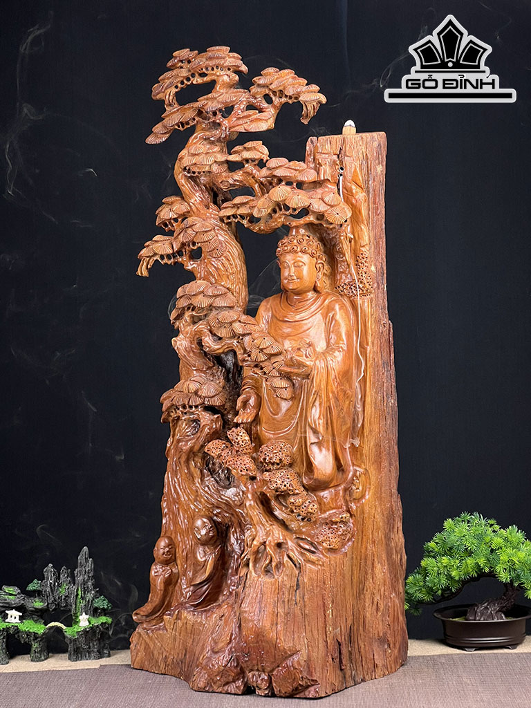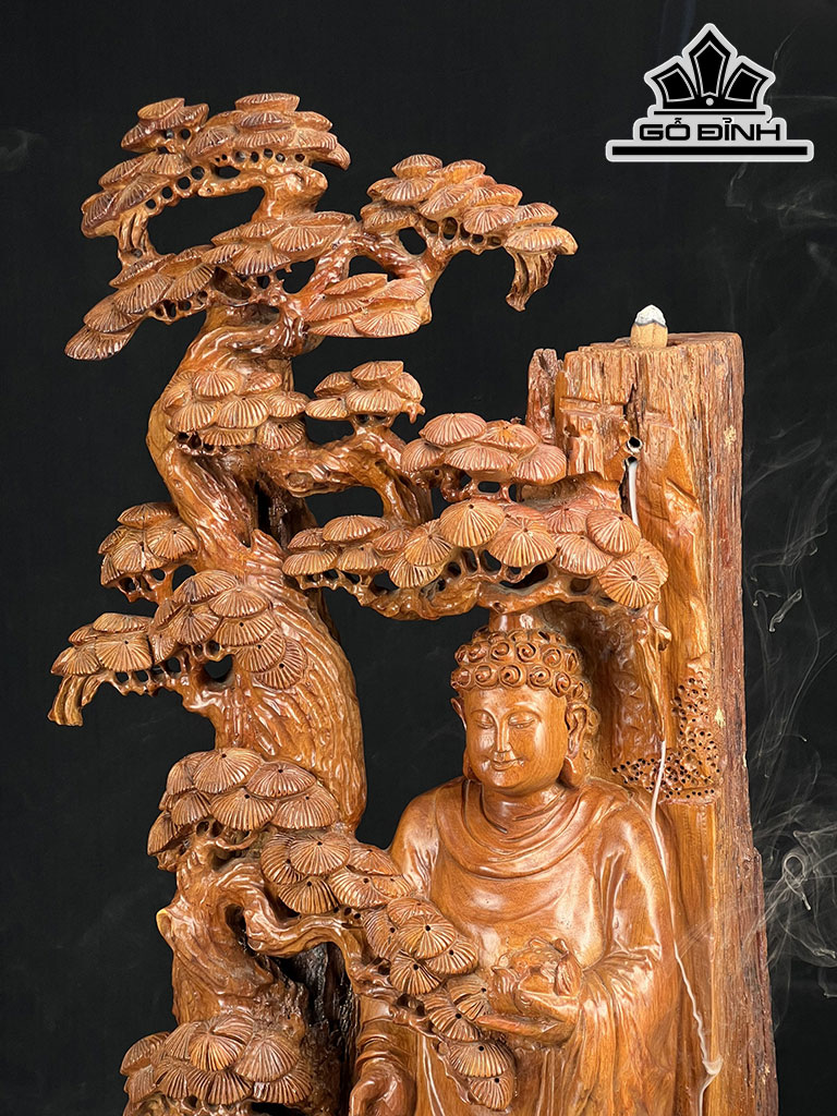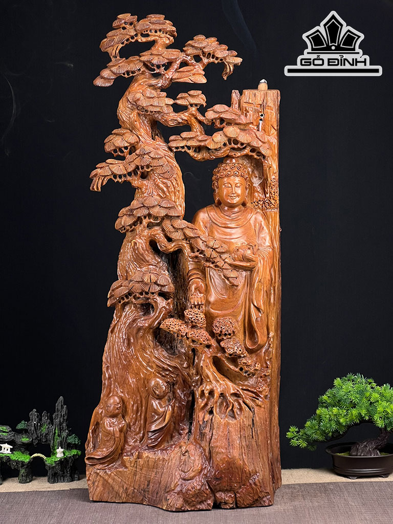 Tượng Nhất Tâm Bái Phật Gỗ Hương Cao 92 Ngang 40 Sâu 23 (cm)