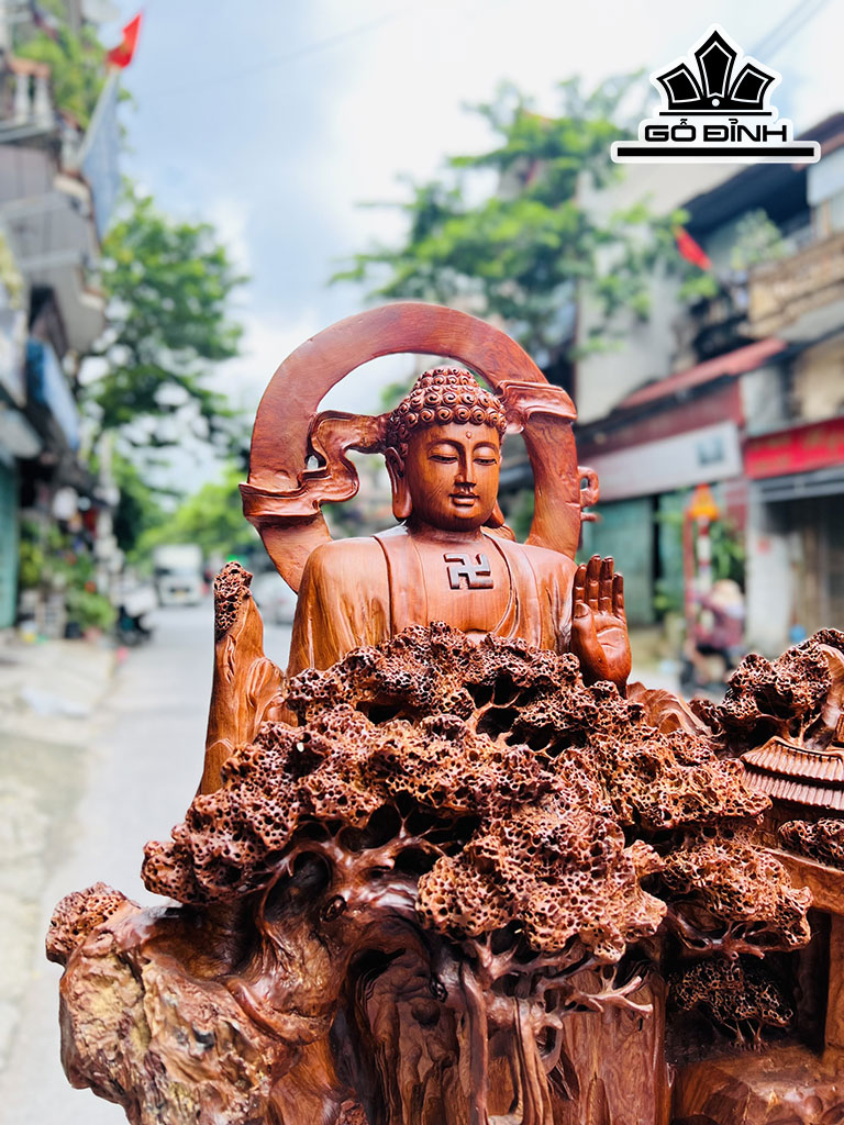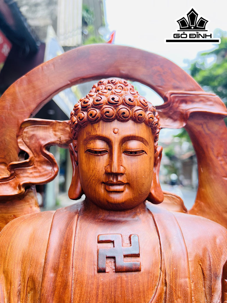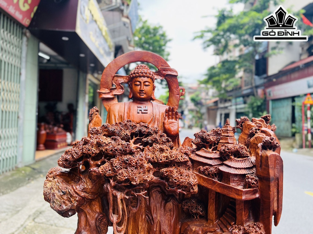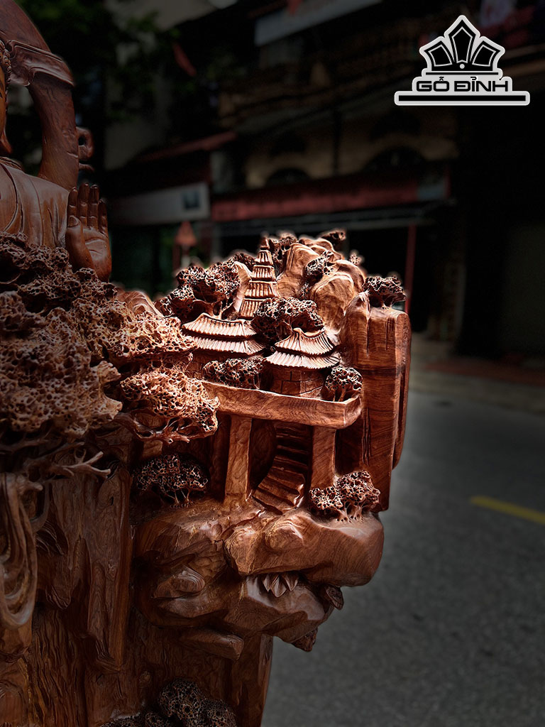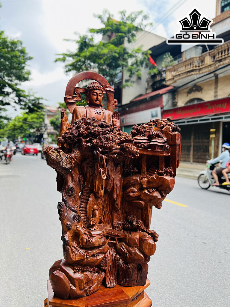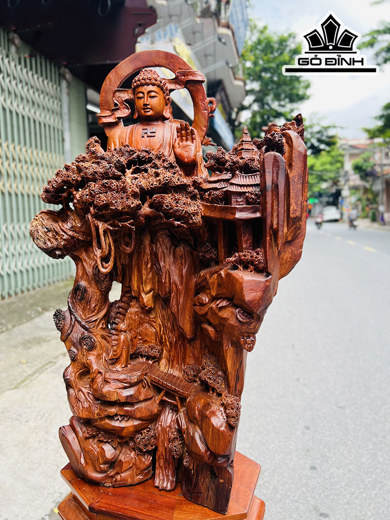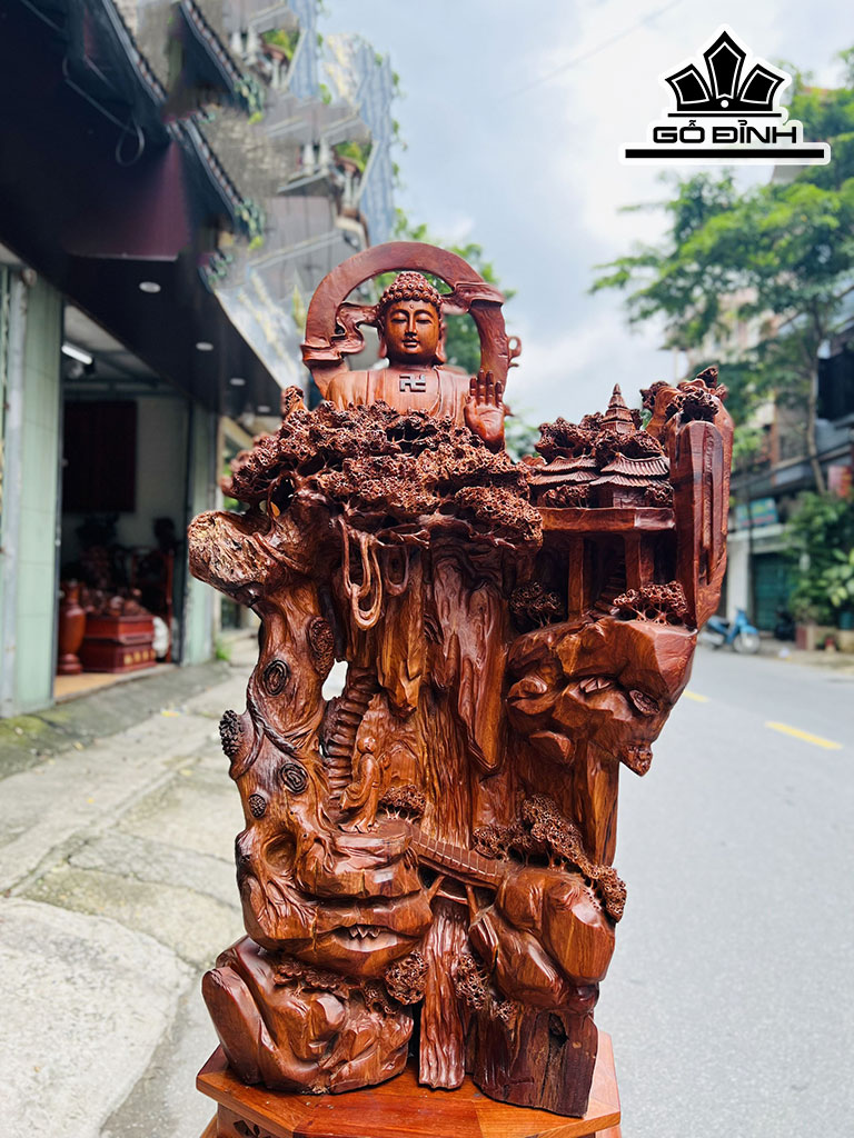 Tượng Nhất Tâm Bái Phật Gỗ Hương Cao 96 Ngang 60 Sâu 38 (cm)