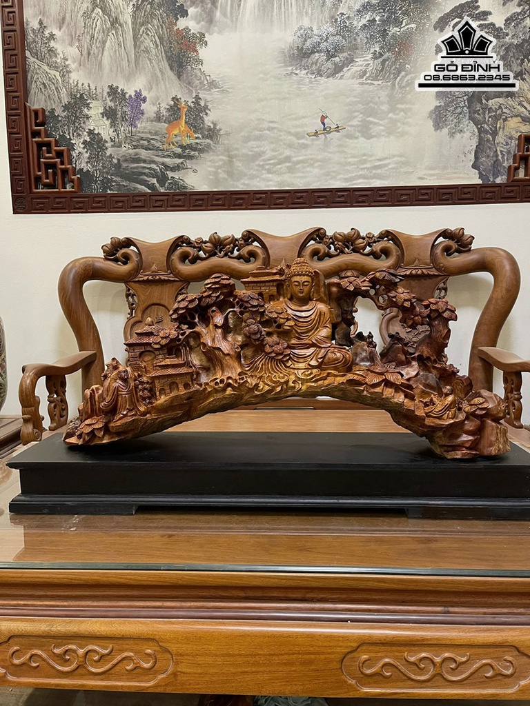 Tượng Nhất Tâm Bái Phật Gỗ Hương Việt Cao 38 Ngang 90 Sâu 20 (cm)