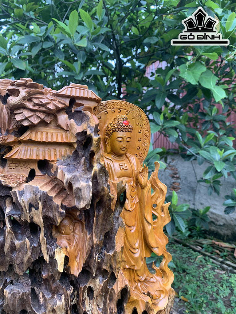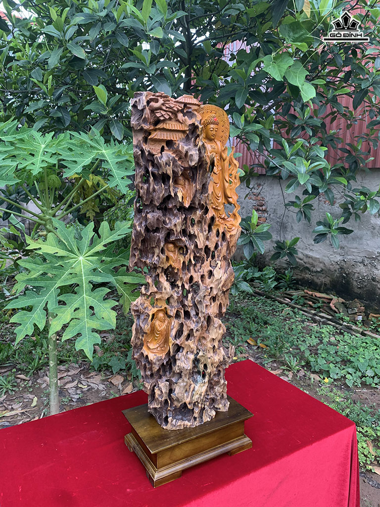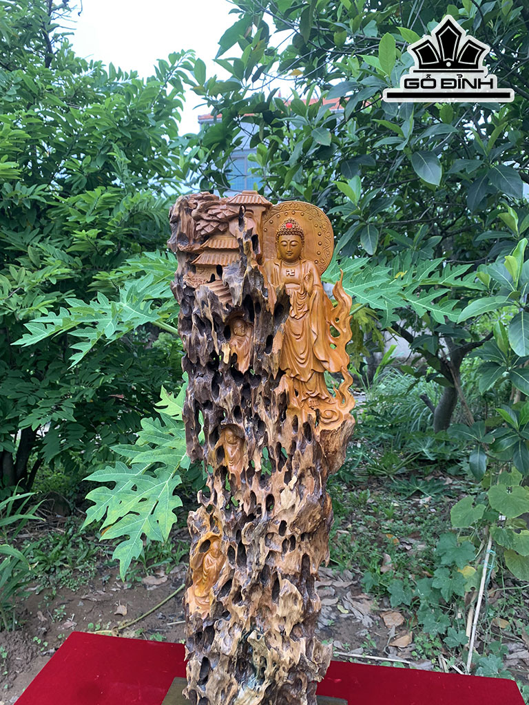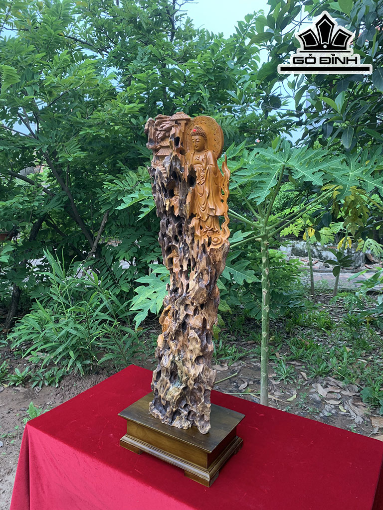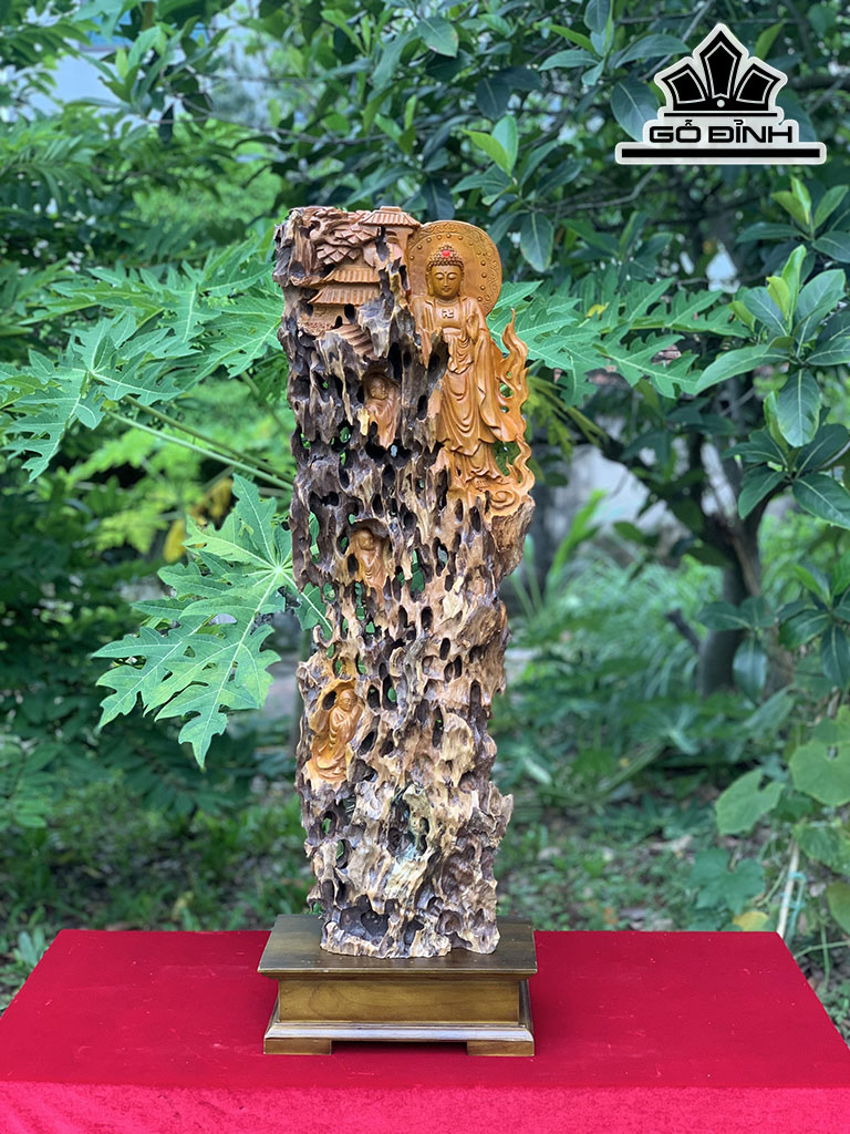 Tượng Nhất Tâm Bái Phật Gỗ Lũa Đinh Hương Cao 81 Ngang 30 Sâu 14 (cm)