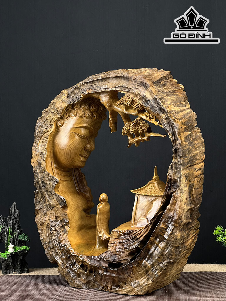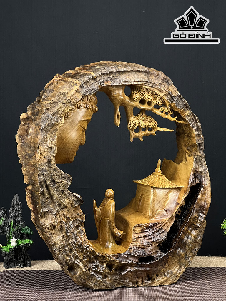 Tượng Nhất Tâm Bái Phật Gỗ Lũa Dổi