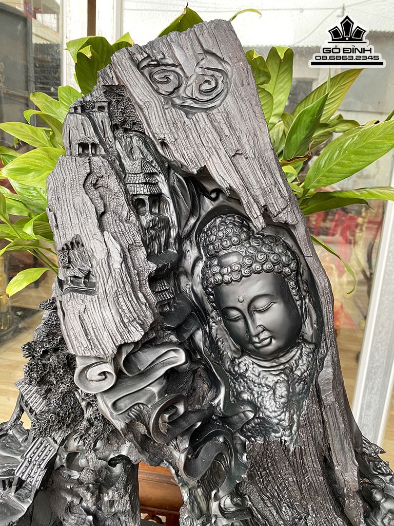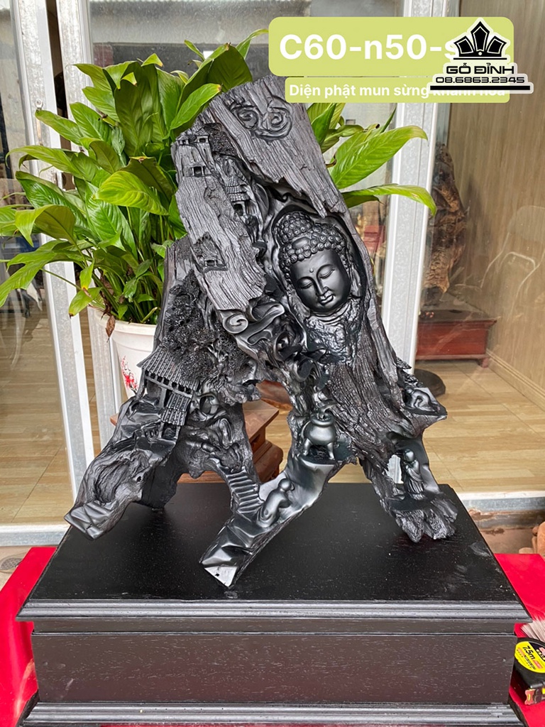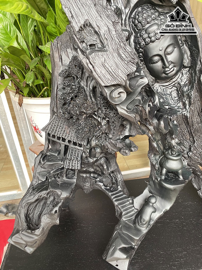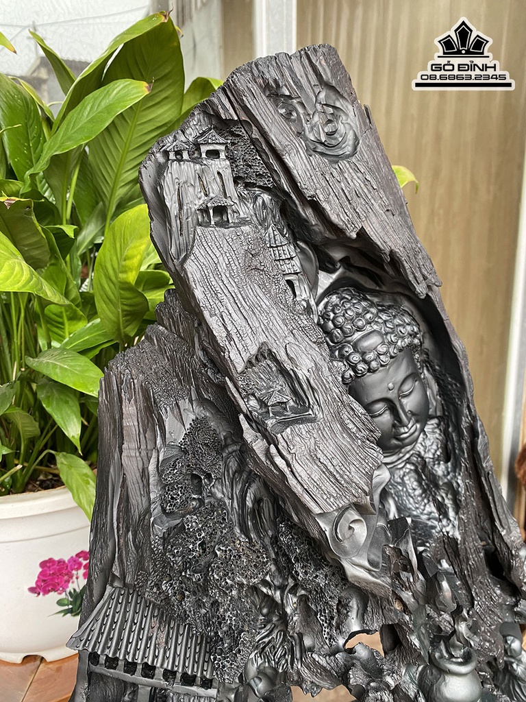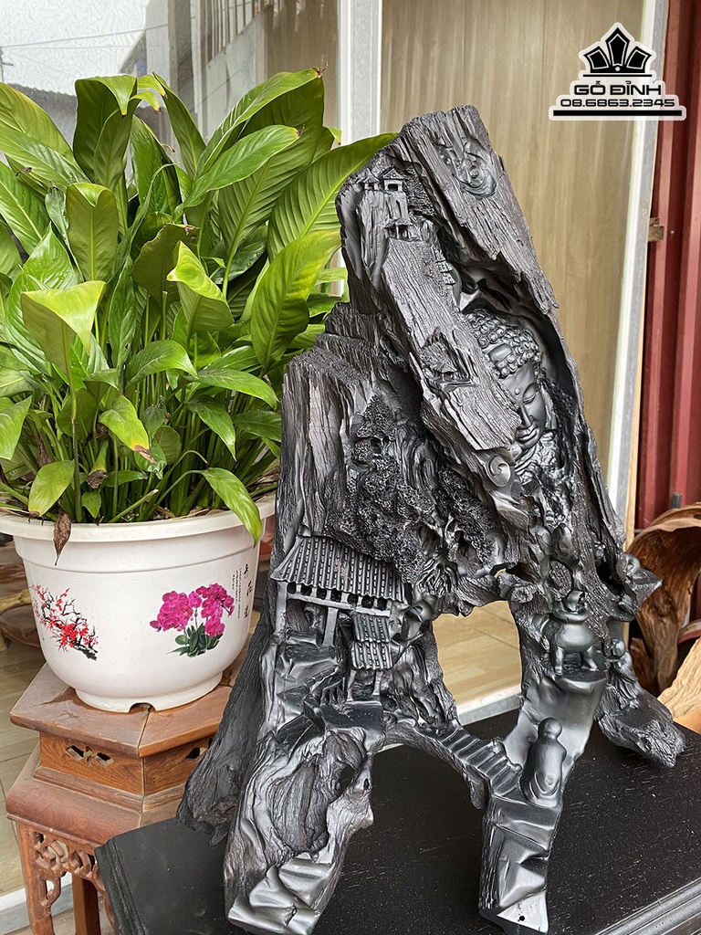 Tượng Nhất Tâm Bái Phật Gỗ Mun Cao 60 Ngang 50 Sâu 22 (cm)