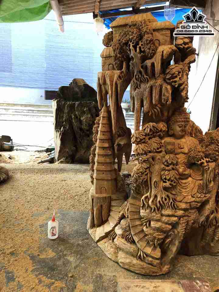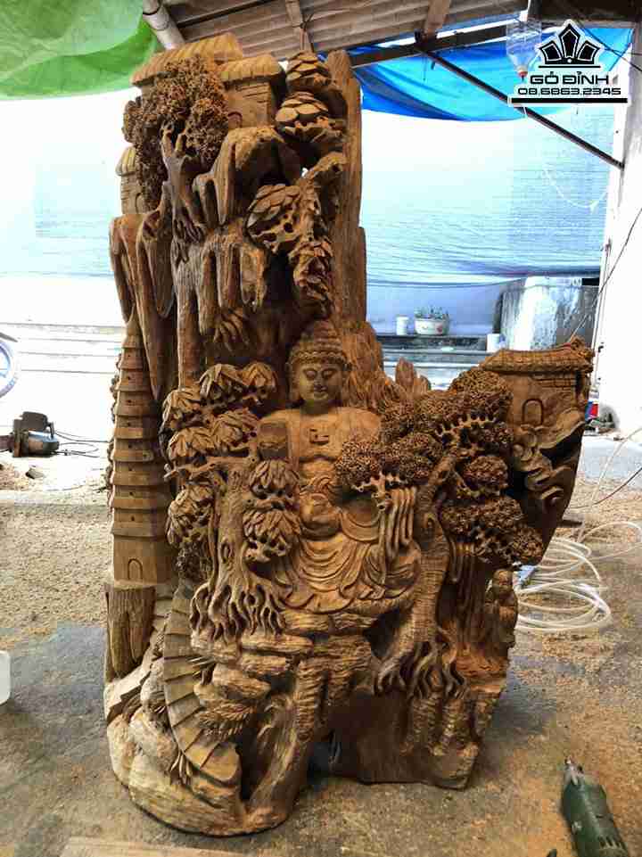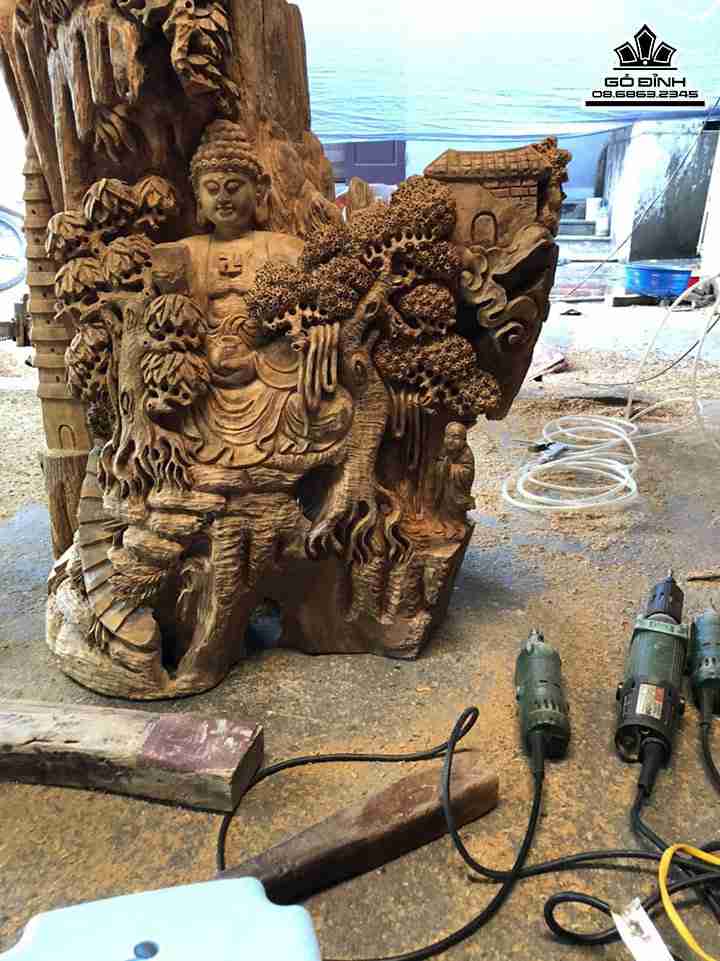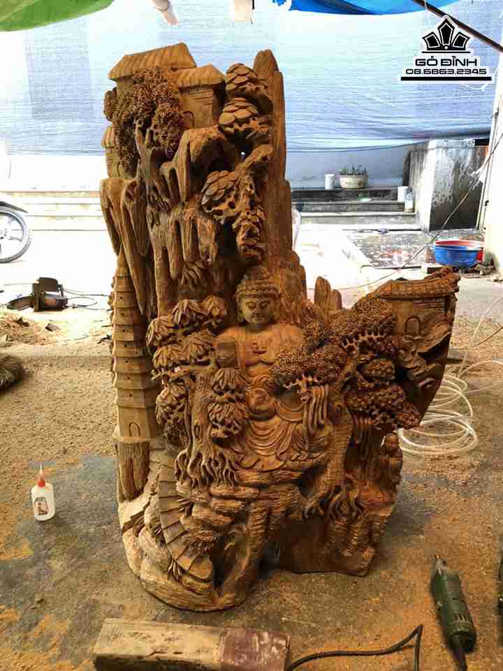 Tượng Nhất Tâm Bái Phật Gỗ Ngọc Am Cao 100 Ngang 78 Sâu 40 (cm)