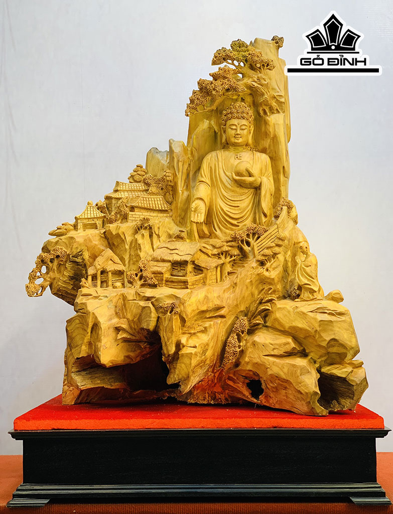 Tượng Nhất Tâm Bái Phật Gỗ Ngọc Am Cao Cả Kỷ 110 Ngang 77 Sâu 68 (cm)