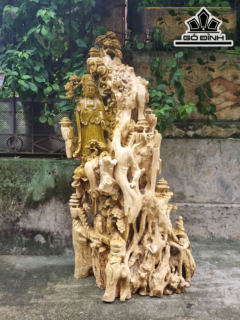 Tượng Nhất Tâm Bái Phật Gỗ Nu Giáng Hương Cao 143 Ngang 70 Sâu 25 (cm)