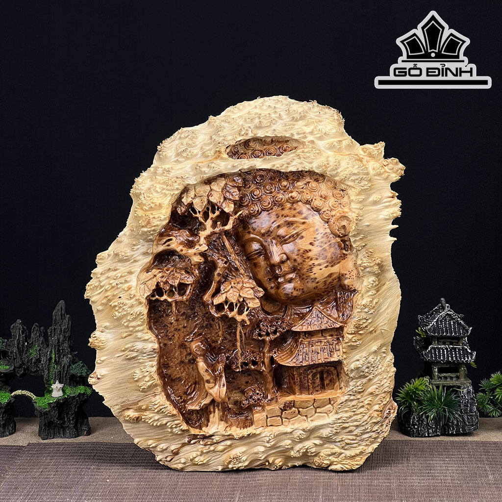 Tượng Nhất Tâm Bái Phật Gỗ Nu Ngọc Am Cao 42 Ngang 36 Sâu 5,5 (cm)