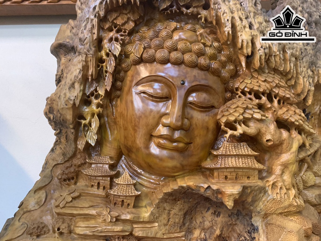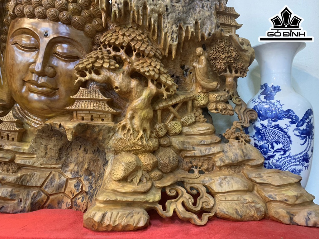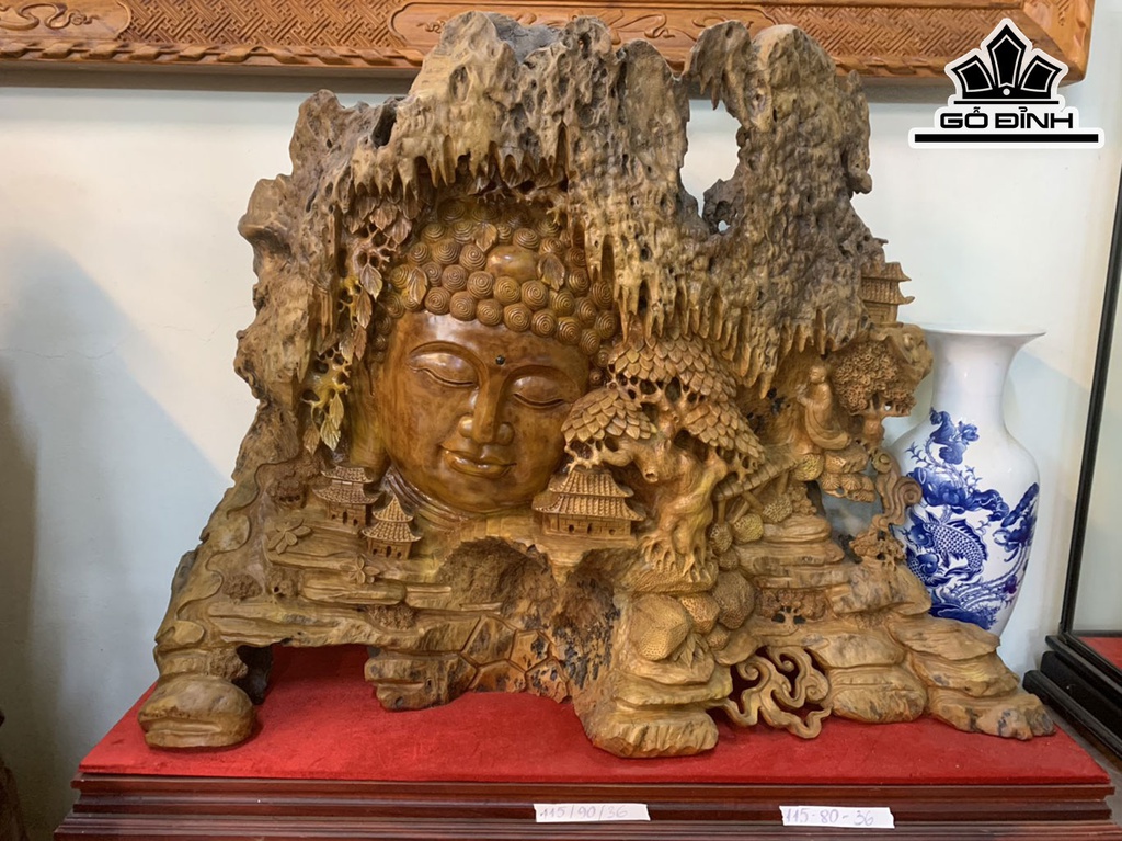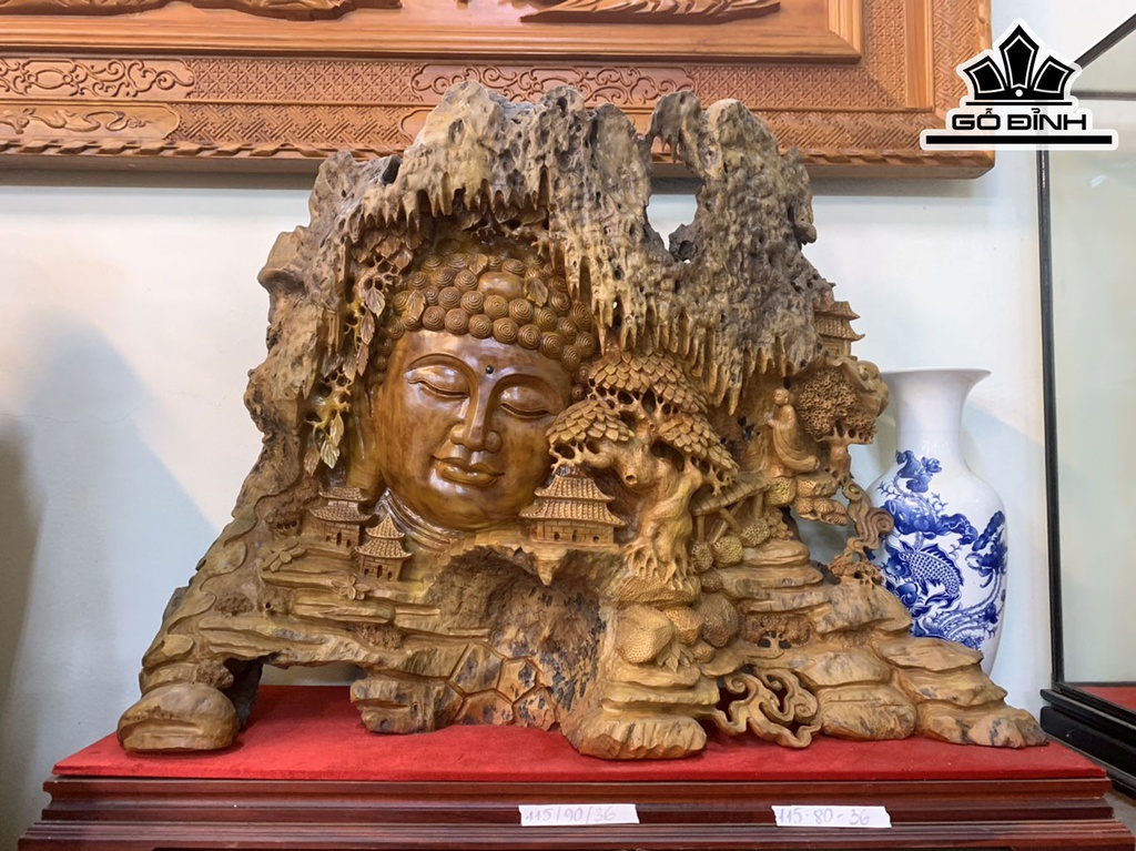 Tượng Nhất Tâm Bái Phật Gỗ Nu Xá Xị Cao 110 Ngang 80 Sâu 35 (cm)