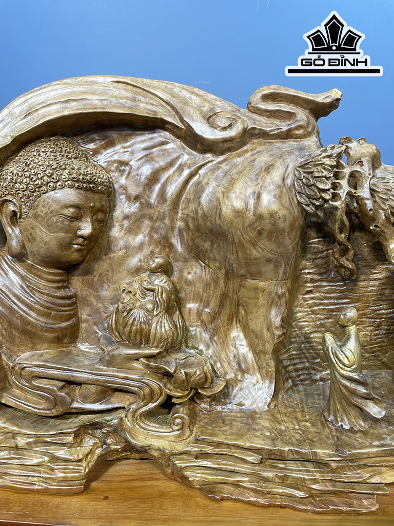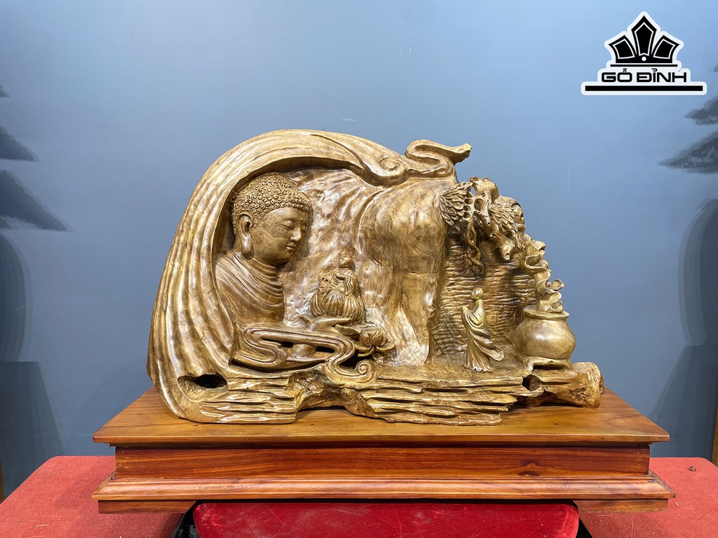 Tượng Nhất Tâm Bái Phật Gỗ Nu Xá Xị Cao 40 Ngang 65 Sâu 20 (cm)
