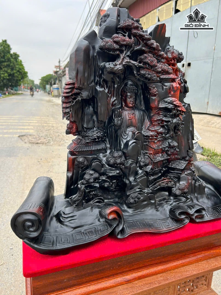 Tượng Nhất Tâm Bái Phật Gỗ Trắc Cao 62 Ngang 61 Sâu 23 (cm)