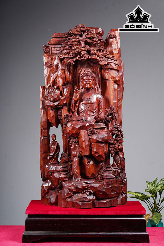 Tượng Nhất Tâm Bái Phật Gỗ Tử Đàn Cao 88 Ngang 43 Sâu 24 (cm)