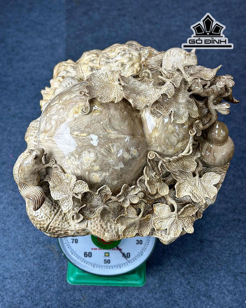 Tượng Nho Sóc Tài Lộc Gỗ Nu Ngọc Nghiến Cao 35 Ngang 50 Sâu 55 (cm)
