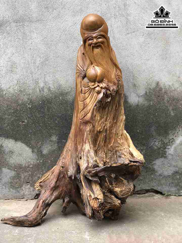 Tượng Ông Thọ Gỗ Bách Xanh Cao 62 Rộng 42 Dày 22 (cm)