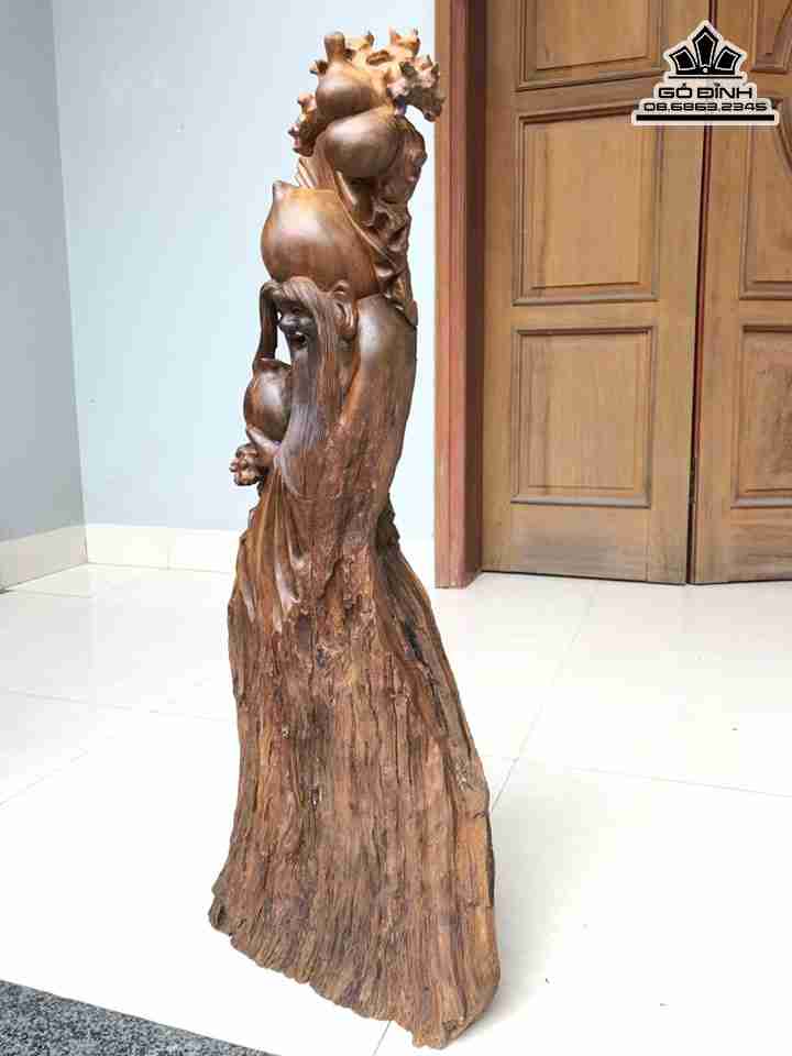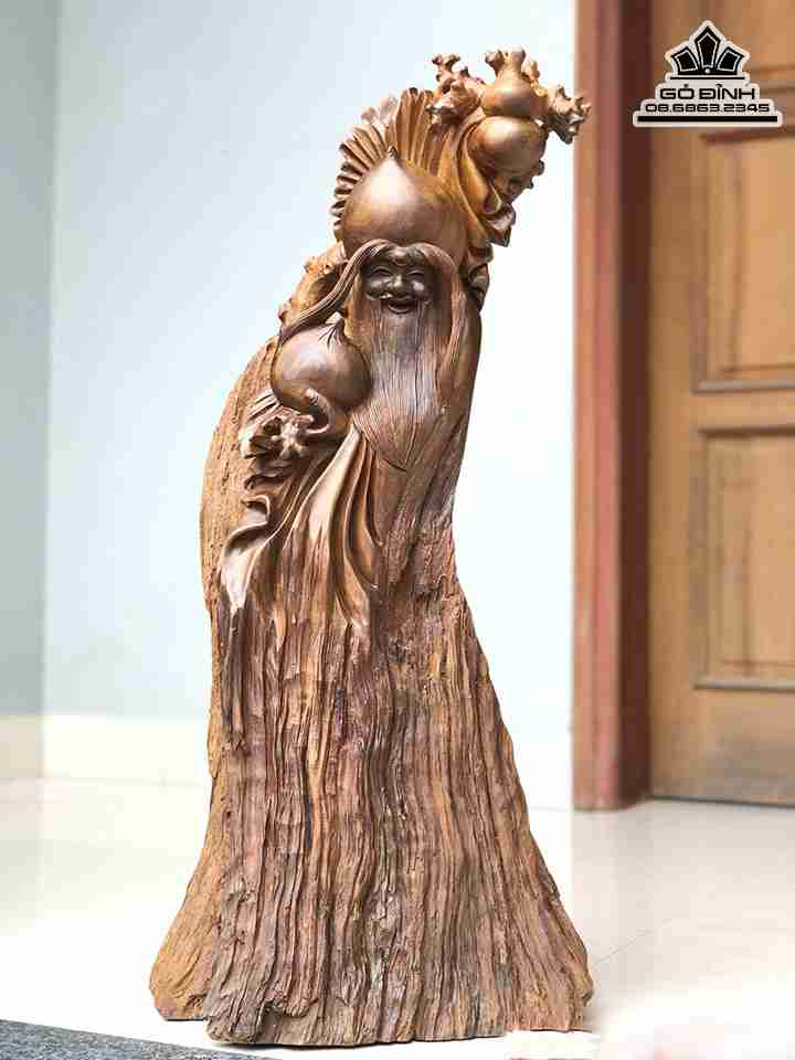 Tượng Ông Thọ Gỗ Bách Xanh Cao 79 Ngang 36 Sâu 18 (cm)