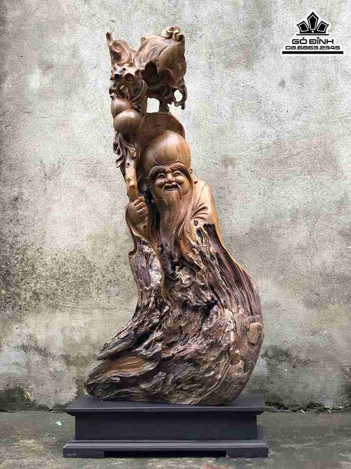 Tượng Ông Thọ Gỗ Bách Xanh Cao 81 Ngang 43 Sâu 14 (cm)