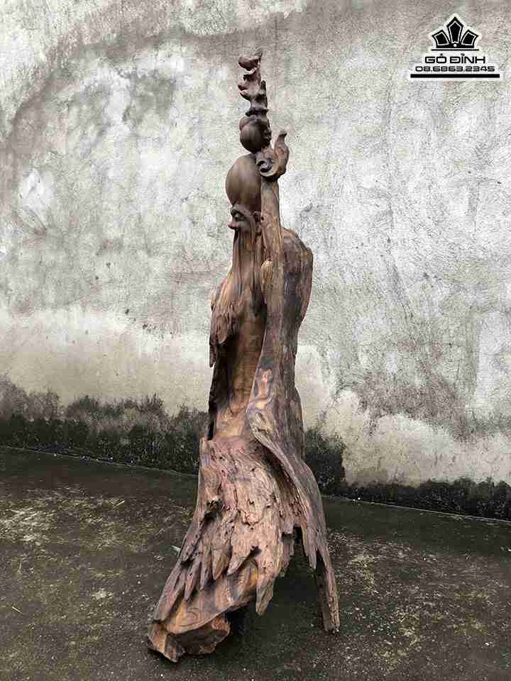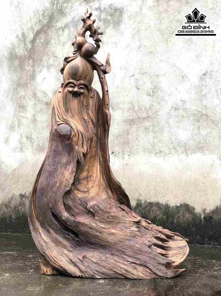 Tượng Ông Thọ Gỗ Bách Xanh Cao 92 Ngang 55 Sâu 26 (cm)