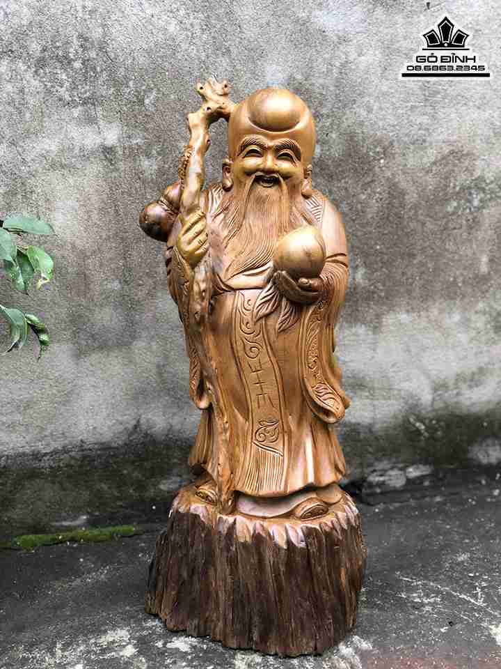 Tượng Ông Thọ Gỗ Bách Xanh Cao 55 Ngang 22 Sâu 16 (cm)