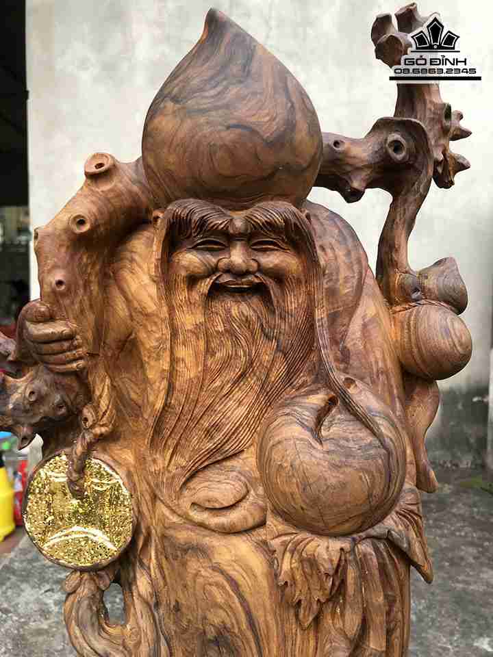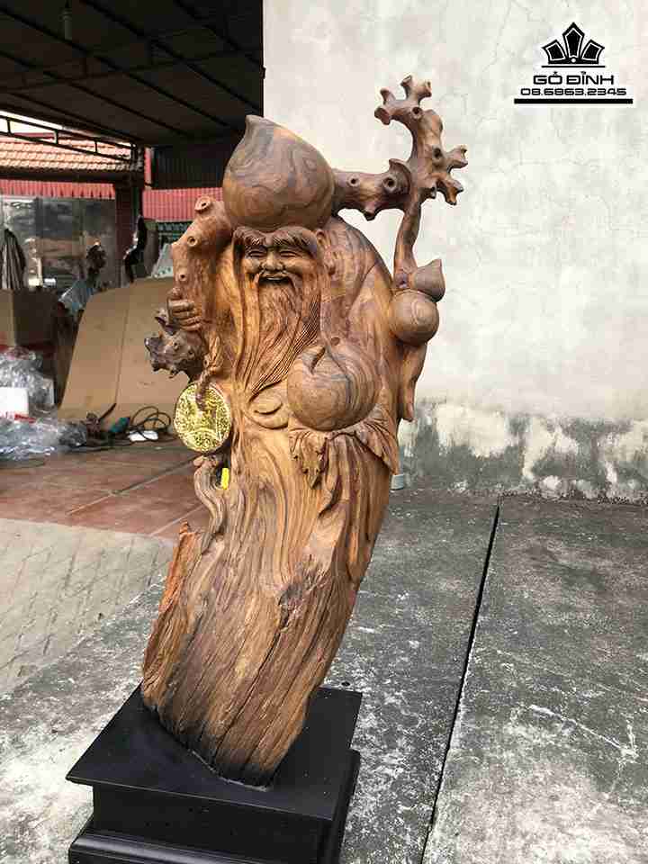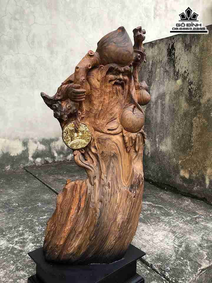 Tượng Ông Thọ Gỗ Bách Xanh Cao 62 Ngang 29 Sâu 16 (cm)