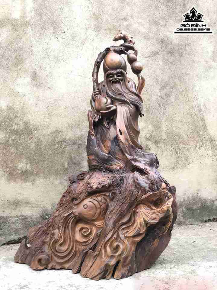 Tượng Ông Thọ Gỗ Bách Xanh Cao 82 Ngang 52 Sâu 22 (cm)