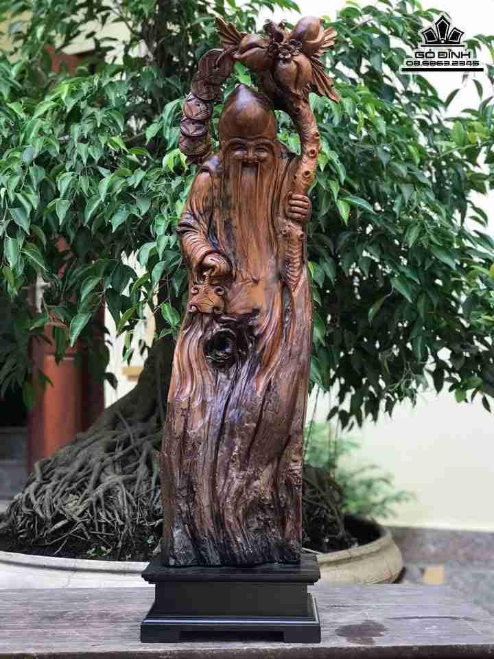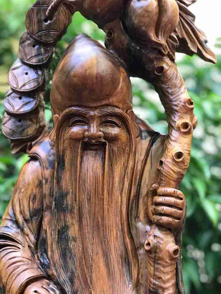 Tượng Ông Thọ Gỗ Bách Xanh Cao 84 Ngang 24 Sâu 12 (cm)