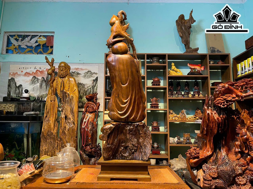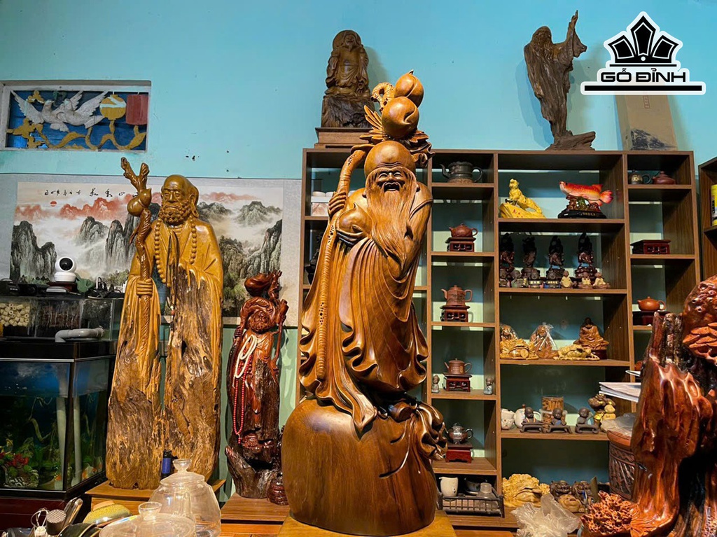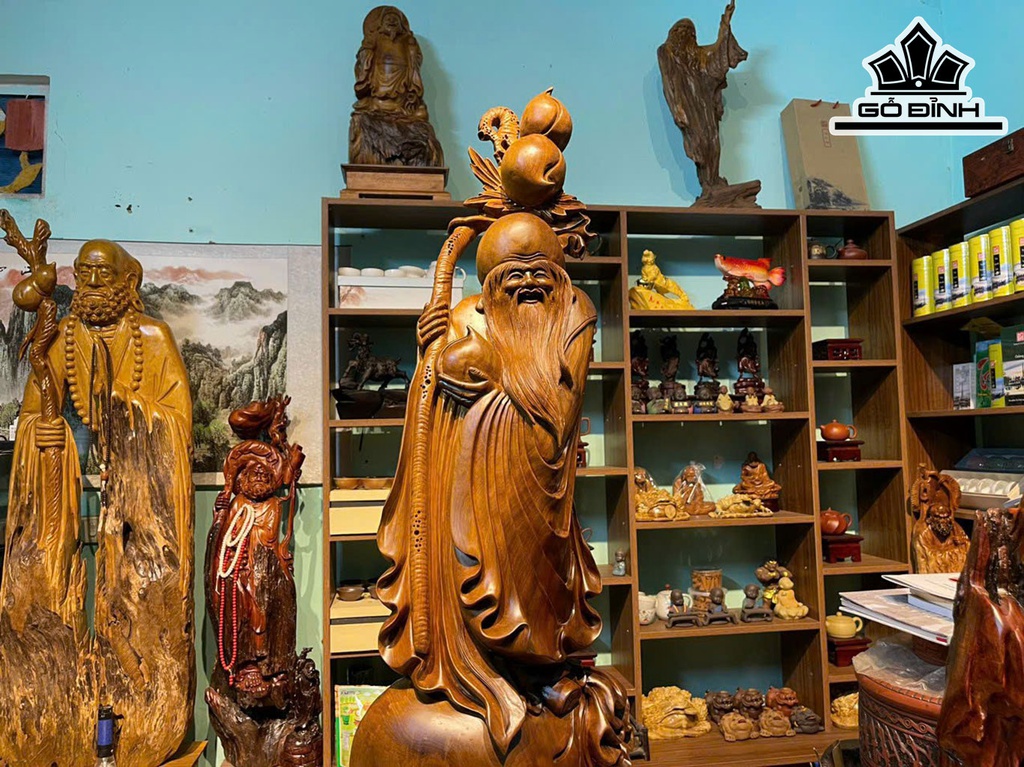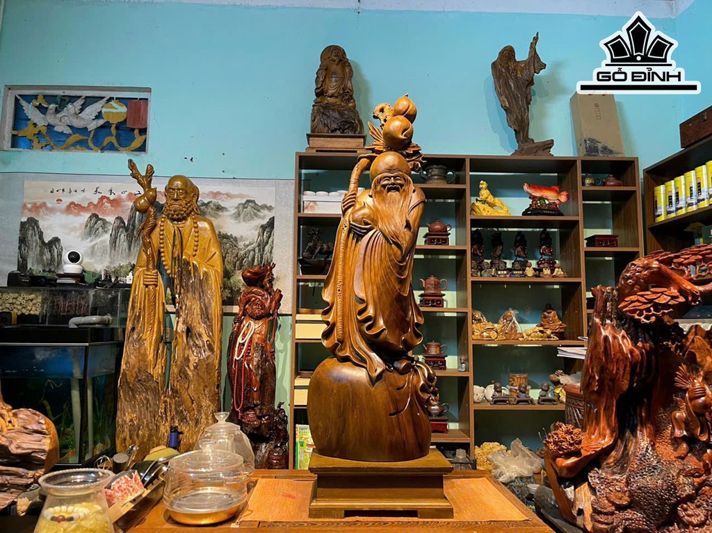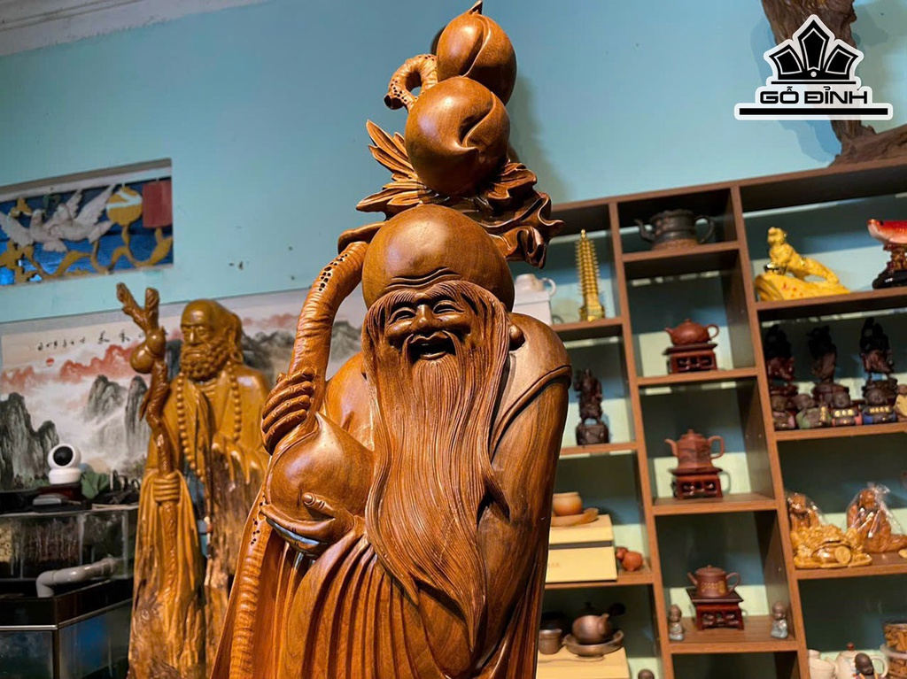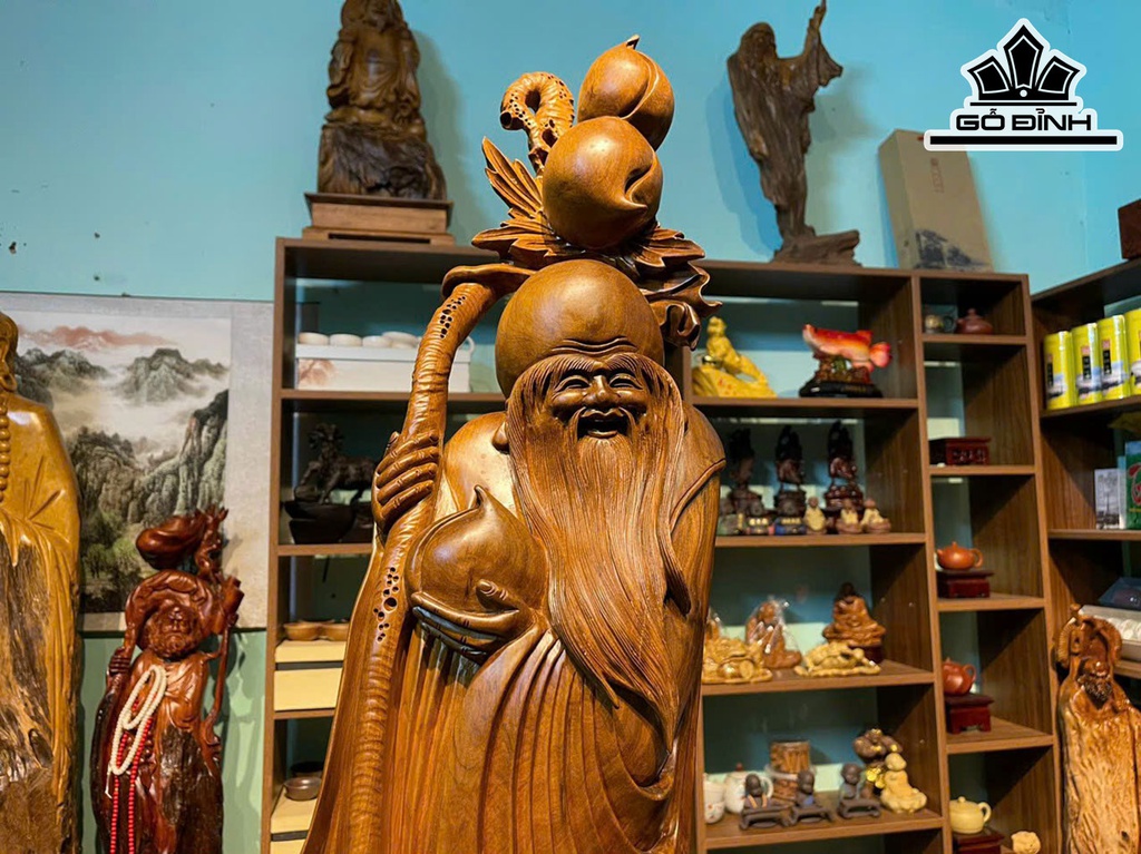 Tượng Ông Thọ Gỗ Bách Xanh Cao 100 Ngang 30 Sâu 10 (cm)