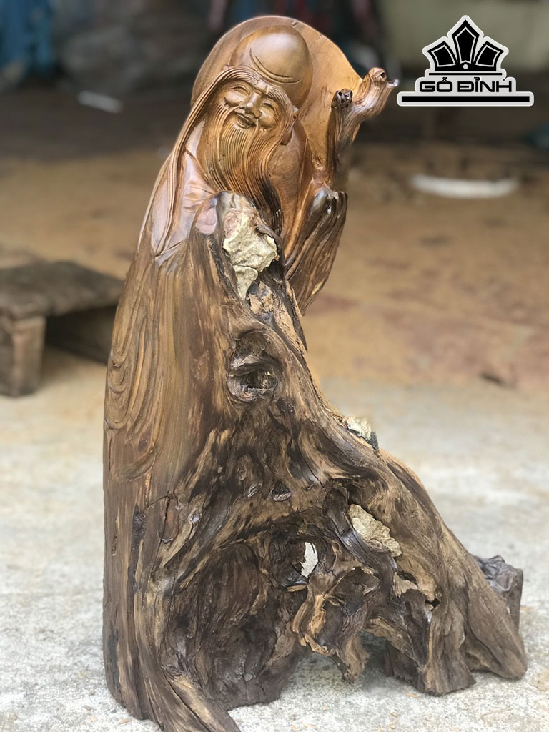 Tượng Ông Thọ Gỗ Bách Xanh Cao 55 Ngang 37 Sâu 13 (cm)