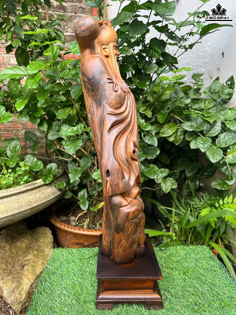 Tượng Ông Thọ Gỗ Bách Xanh Cao 60 Ngang 19 Sâu 12 (cm)
