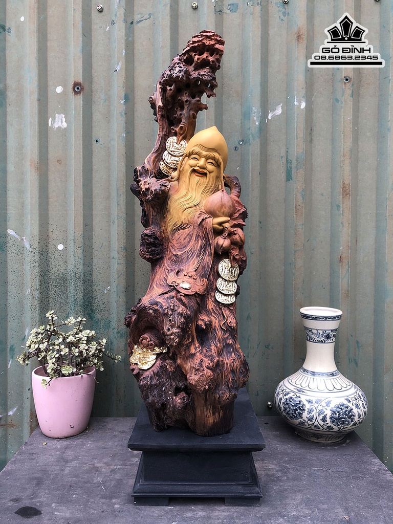 Tượng Ông Thọ Gỗ Bách Xanh Cao 66 Ngang 21 Sâu 21 (cm)