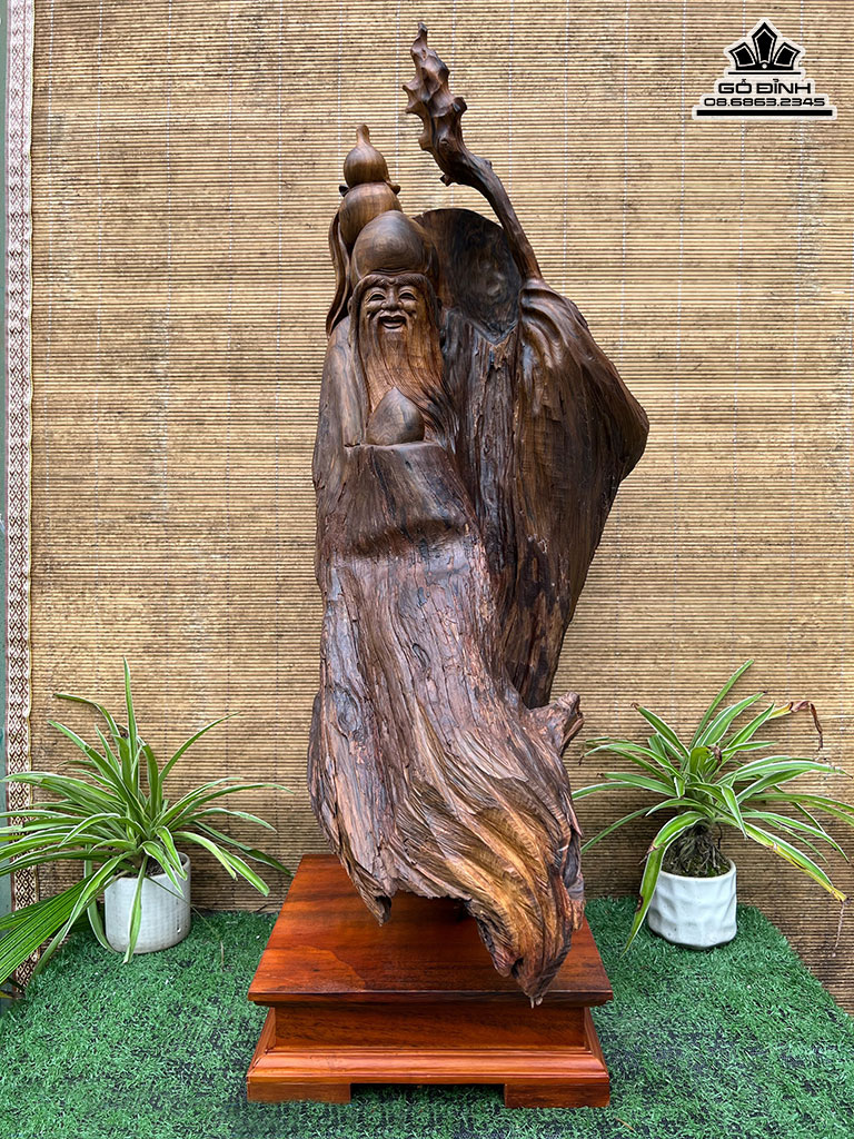 Tượng Ông Thọ Gỗ Bách Xanh Cao 69 Ngang 29 Sâu 31 (cm)