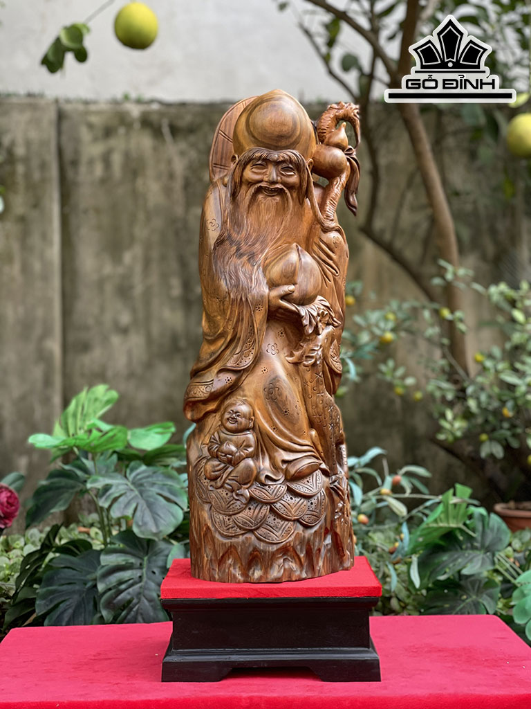 Tượng Ông Thọ Gỗ Bách Xanh Cao 70 Ngang 23 Sâu 21 (cm)