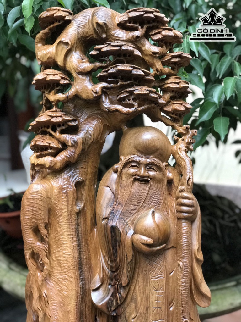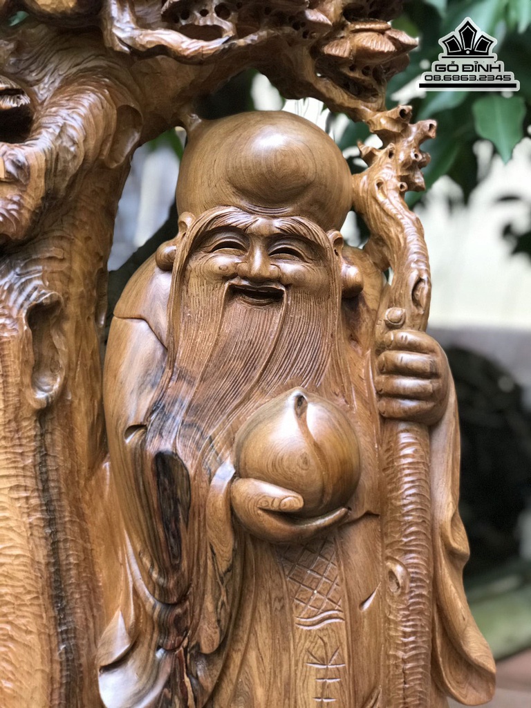 Tượng Ông Thọ Gỗ Bách Xanh Cao 76 Ngang 40 Sâu 25 (cm)