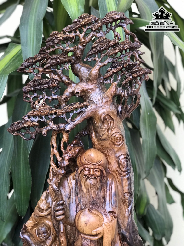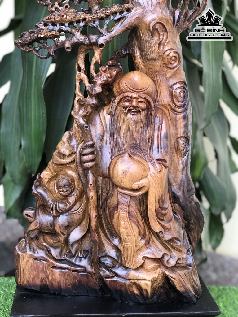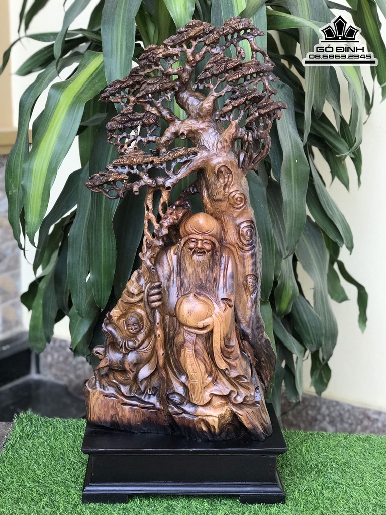 Tượng Ông Thọ Gỗ Bách Xanh Cao 77 Ngang 33 Sâu 20 (cm)