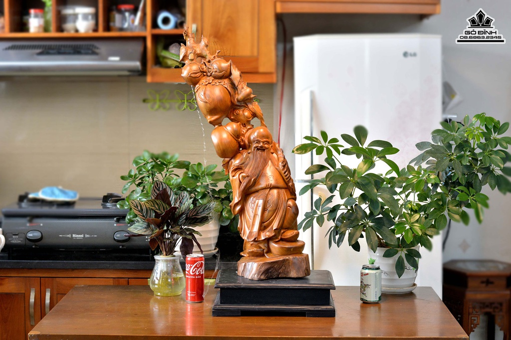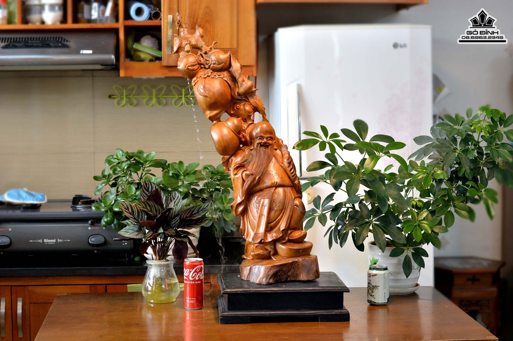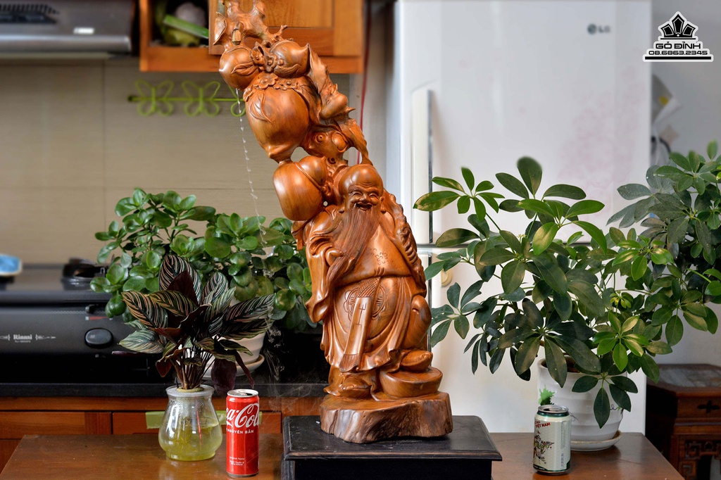 Tượng Ông Thọ Gỗ Bách Xanh Cao 88 Ngang 30 Sâu 16 (cm)
