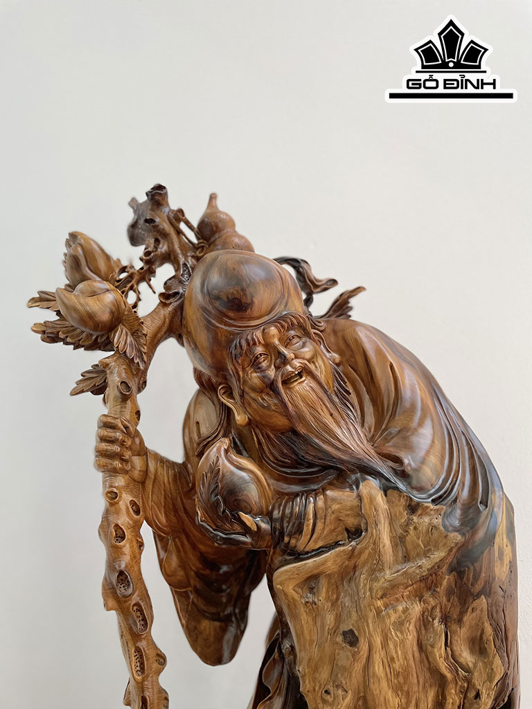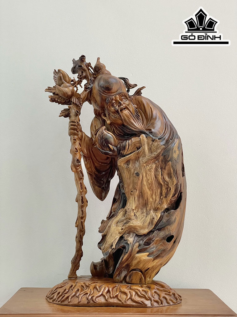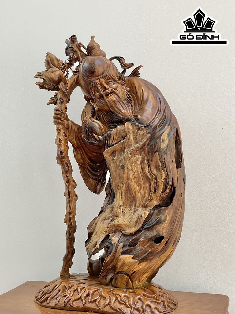 Tượng Ông Thọ Gỗ Bách Xanh Cao 90 Ngang 50 Sâu 32 (cm)