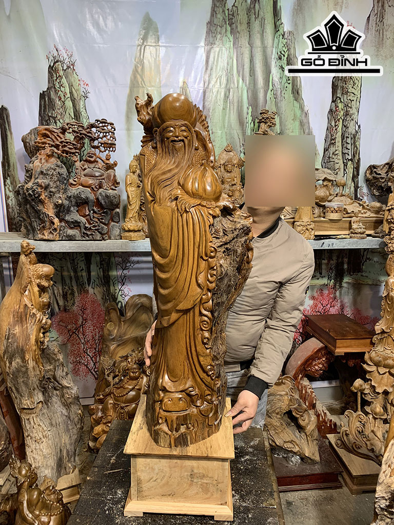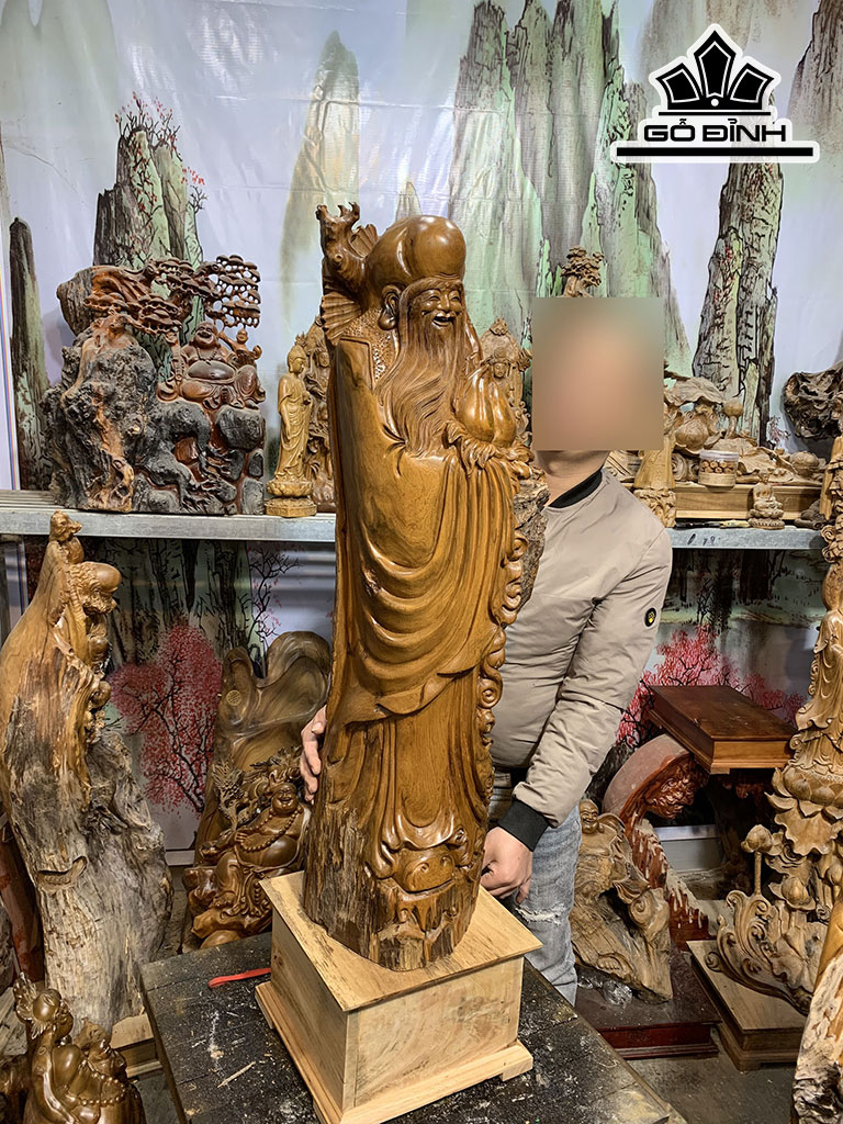 Tượng Ông Thọ Gỗ Bách Xanh Cao Cả Kỷ 106 Ngang 33 Sâu 28 (cm)